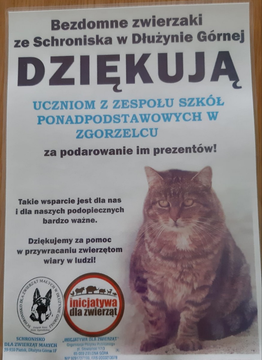 AKCJA CHARYTATYWNA NA RZECZ SCHRONISKA DLA ZWIERZĄT W DŁUŻYNIE
