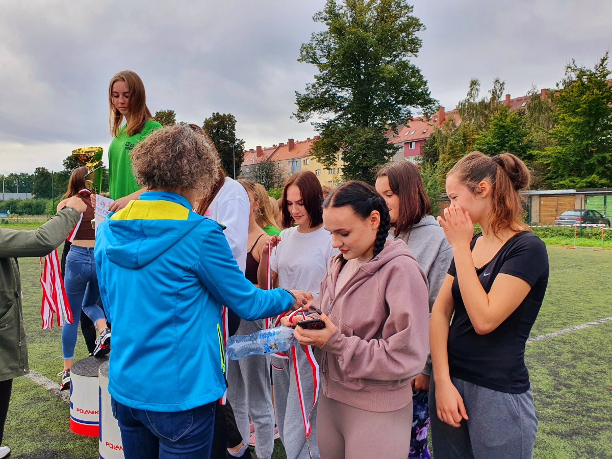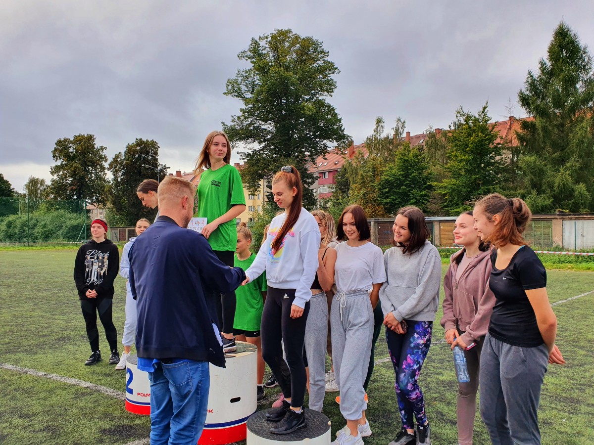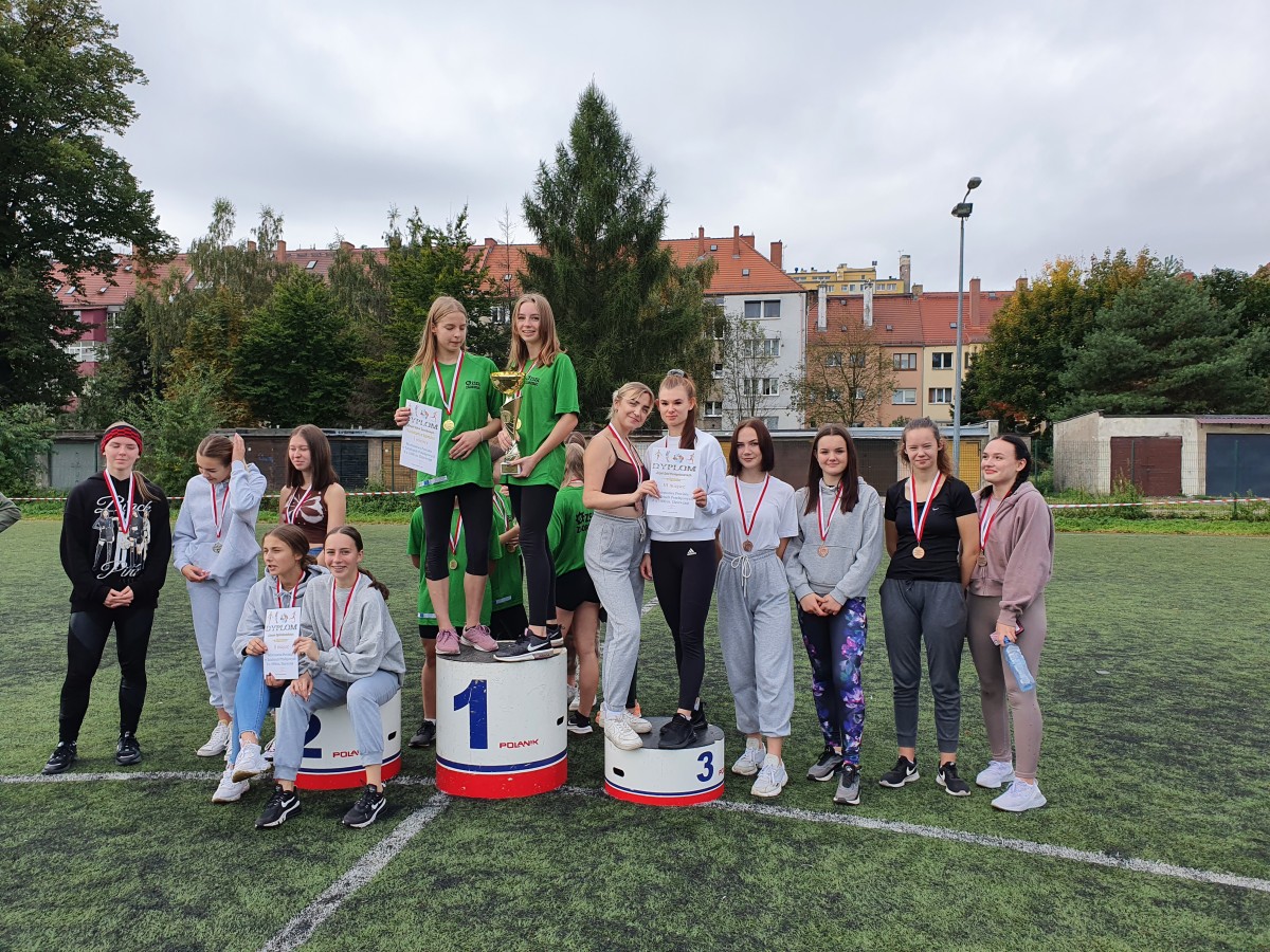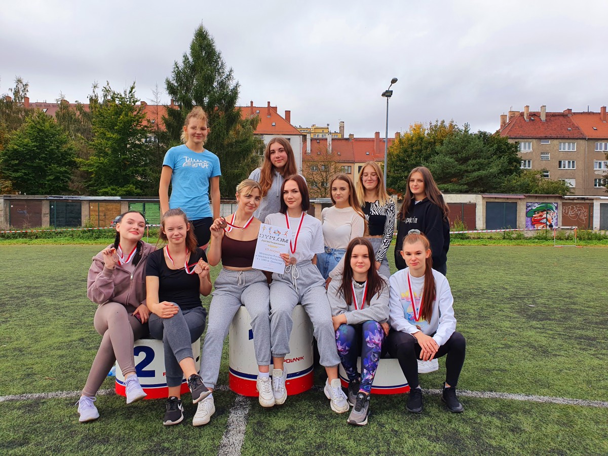 W sztafecie żeńskiej pobiegły: ROZENFELD URSZULA kl.III BF, POKRZYK KATARZYNA kl.II SE, SZCZEPAŃSKA WIKTORIA kl.II SE, TUCHOLSKA NATALIA kl.IV THL, MACHNICKA WERONIKA kl.II H, ŁAJDECKA IZA kl.II H. Dziewczęta były gorąco wspomagane dopingiem przez swoje rezerwowe koleżanki, a były nimi: ŻELEŻNICKA PAULA kl.I LE, GERWATOWSKA WIKTORIA kl.I LE, SZATKOWSKA PAULA kl.I LE, PAWŁOWICZ ZOFIA kl.II R, WIECZOREK MARIA kl.I BS, SZAŁAS NATALIA kl.III bbk. Opiekunką sztafety dziewcząt była mgr Jolanta Wdowska.