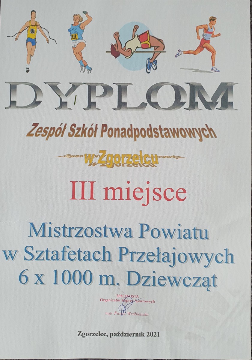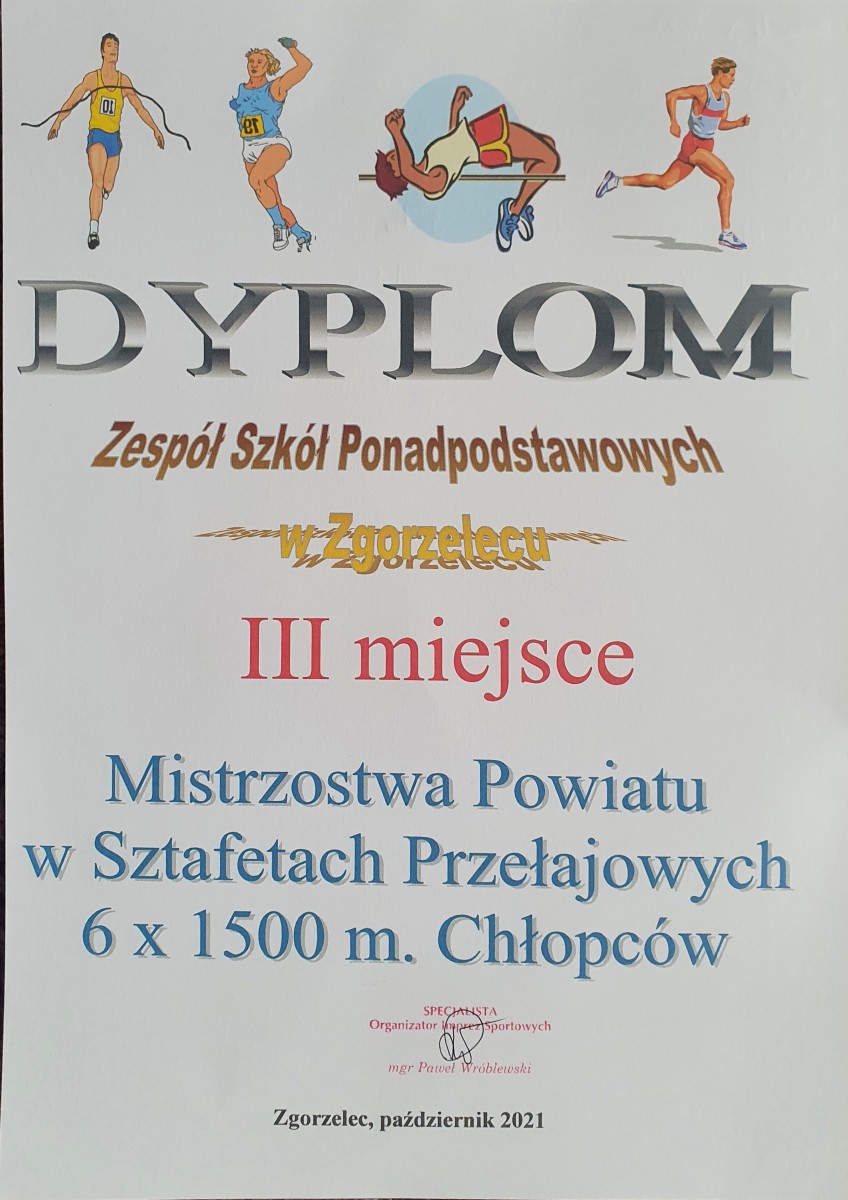 W poniedziałek - 4 października odbyły się Mistrzostwa Powiatu w Sztafetach Przełajowych. Dziewczęta rywalizowały na dystansie 6x1000m, a chłopcy na dystansie 6x1500m. W tej sportowej walce sztafety reprezentujące Naszą szkołę wywalczyły brązowe modale.