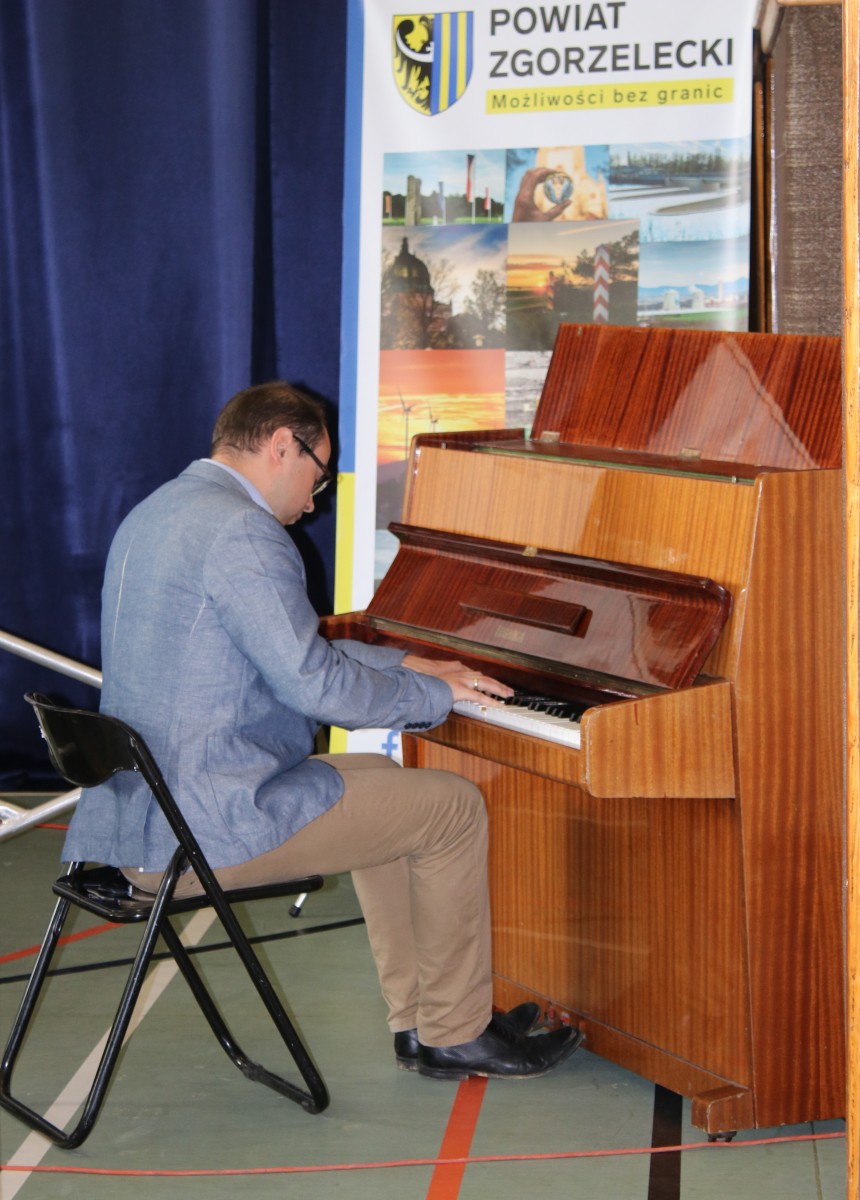 W jubileuszowy nastrój zebranych gości wprowadził Pan Przemysław Bereziuk – nauczyciel Państwowej Szkoły Muzycznej w Zgorzelcu – motywem muzycznym z filmu “Smuga cienia”. Po uroczystym wprowadzeniu pocztów sztandarowych i odśpiewaniu hymnu państwowego wszystkich zaproszonych gości serdecznie przywitała Pani Monika Listwan – dyrektor ZSP w Zgorzelcu. O zabranie głosu została poproszona Pani Marzena Machałek, która przekazała życzenia i gratulacje dla nauczycieli i pracowników szkoły z okazji rocznicy i Dnia Edukacji Narodowej. Przypomniała uniwersalną prawdę o potrzebie wychowywania, a nie tylko uczenia. Następnie odznaczyła nauczycieli Powiatu Zgorzeleckiego: panią Dorotę Chitruń i panią Dorotę Zofię Czarnecką medalem Ministra Edukacji Narodowej.