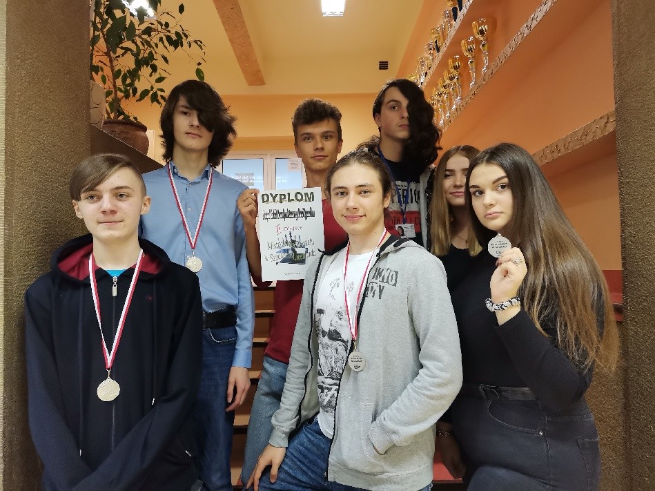 Nasza reprezentacja, która grała w składzie: Oliwia Obuchowska kl.3bwm, Gabriela Mazurkiewicz kl.3L, Szymon Szemiel kl.1AR, Maciej Wrześniewski kl.1AR, Mateusz Gruszeczka kl.1LE, Feliks Garbowski kl.3TL i Maciej Zubel kl.3L zajęła II miejsce wywalczając srebrne medale.