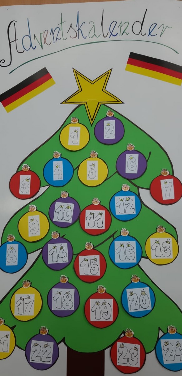 zamiast słodyczy proszę umieścić w okienkach kalendarza słówka niemieckie bądź angielskie związane z tematyką świąteczną