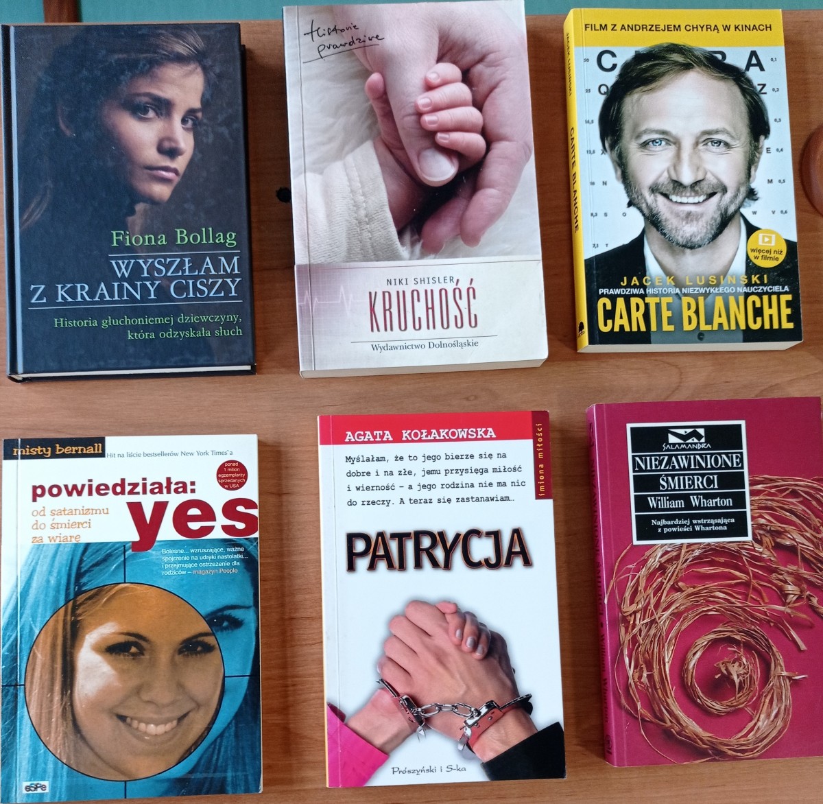 Wśród pozyskanych pozycji znalazły się m.in.: powieści obyczajowe, przygodowe, historyczne, kryminały, autobiografie, literatura podróżnicza, promująca zdrowie i zdrowy styl życia oraz zestaw słowników. Tytuły wszystkich przekazanych książek znajdują się w załączniku, a lista darczyńców przedstawia się następująco: