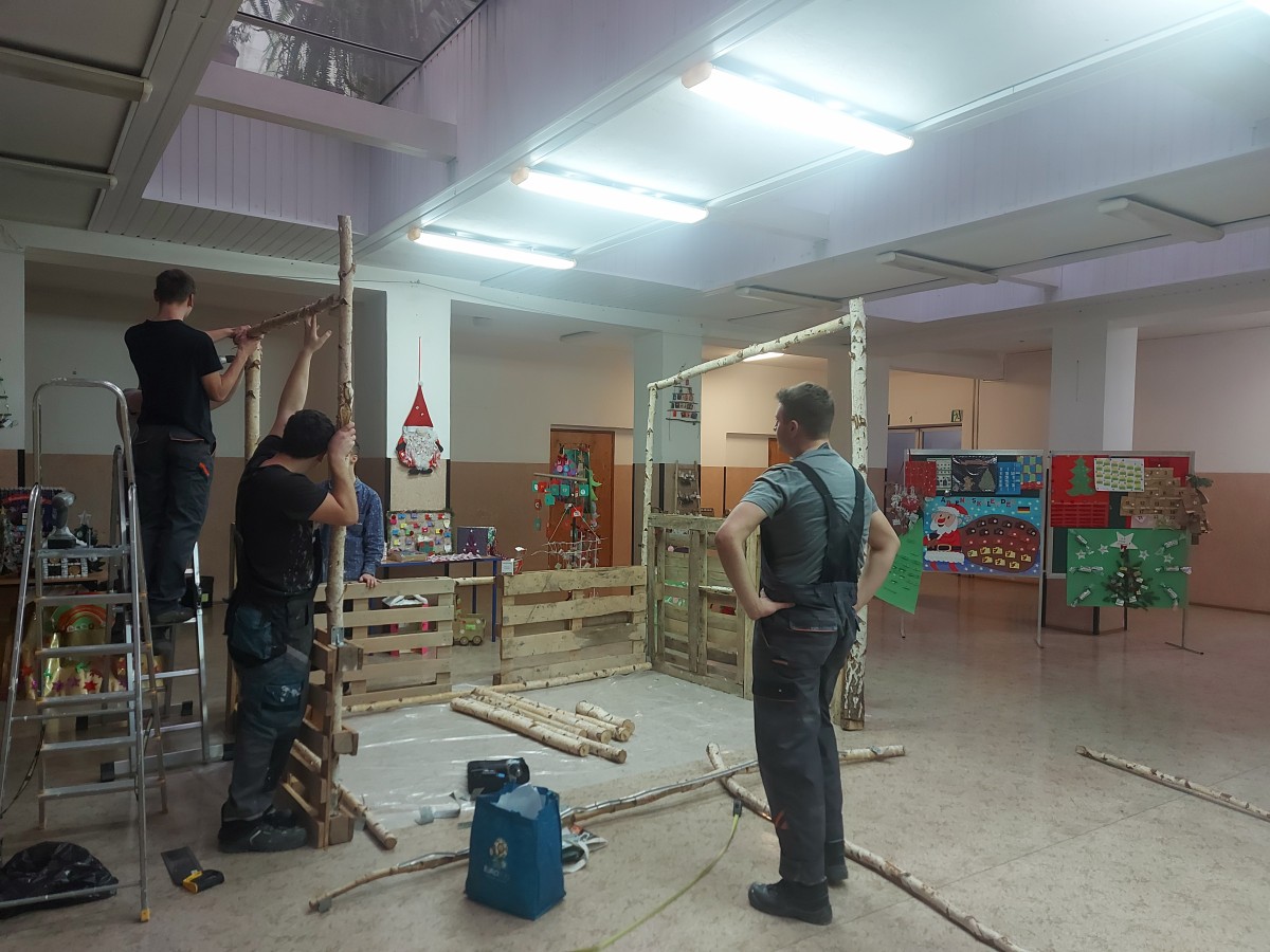 Dekoracje świąteczną wykonali uczniowie klas budowlanych pod opieką nauczycieli Róży Owsianik, Marzeny Bodo i Marii Żołędziewskiej – Neścior.