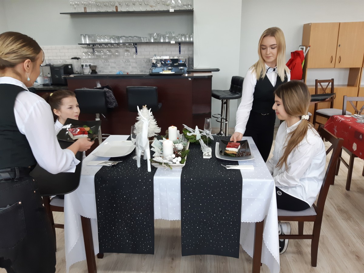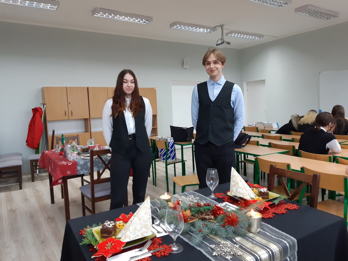 15 grudnia 2021 r. odbył się konkurs hotelarski pt. " Kreatywny stół świąteczny i obsługa gości", podczas którego uczniowie z klas hotelarskich mogli wykazać się wiedzą i umiejętnościami z zakresu obsługi konsumenta, a także zaprezentować pięknie udekorowane świąteczne stoły zgodnie z hasłem "Święta bez plastiku". Wszyscy uczniowie wykazali się ogromną kreatywnością i pomysłowością, a najlepsi zostali nagrodzeni miejscami: