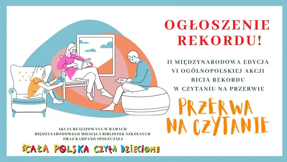 Szanowni Państwo, z radością i wyrazami uznania za zaangażowanie w II Międzynarodowej edycji VI Ogólnopolskiej akcji bicia rekordu w czytaniu na przerwie "Przerwa na czytanie".