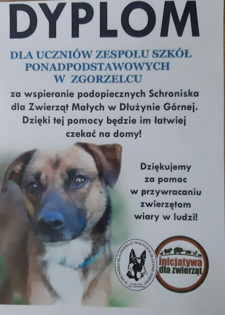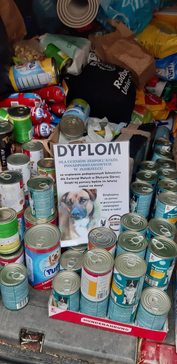 W dniu dzisiejszym, tj. 17. grudnia, przekazaliśmy Schronisku dla zwierząt w Dłużynie Górnej dary zebrane w naszej szkole. Zgromadziliśmy karmę suchą i mokrą oraz smakołyki a także koce, poduszki, obroże, miski itd.