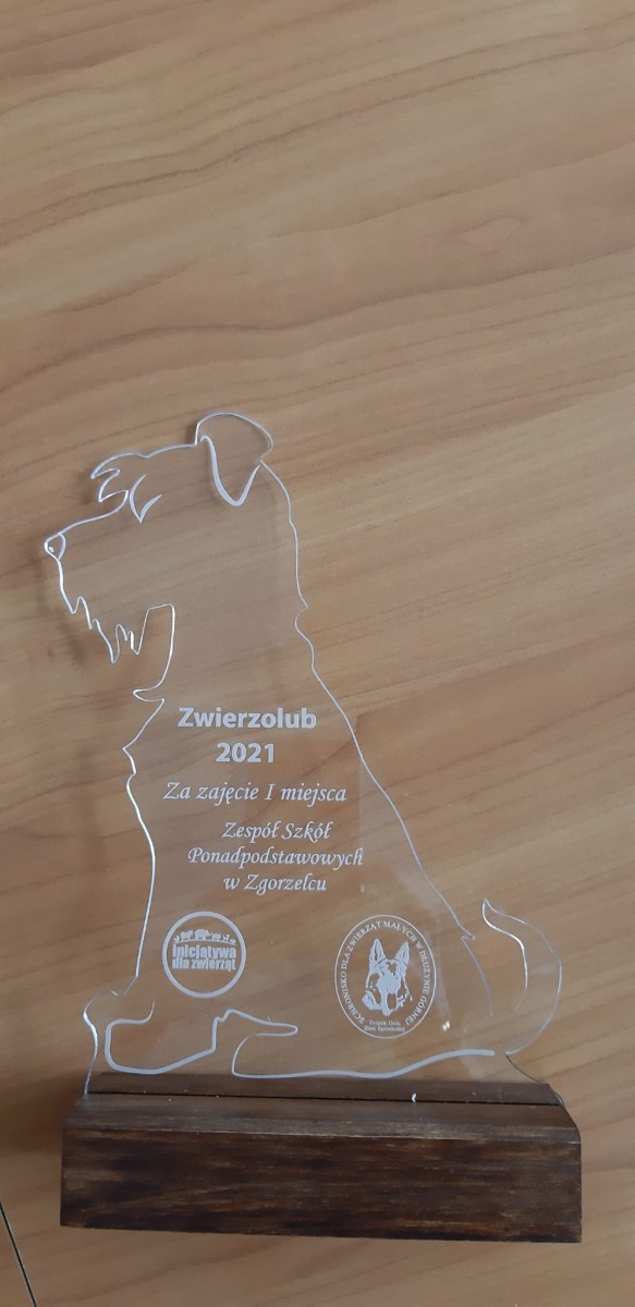 Miło mi poinformować, że w piątek, 4 marca, pani Sylwia Socha -kierownik Schroniska dla zwierząt małych w Dłużynie Górnej - wręczyła naszej szkole statuetkę Zwierzoluba 2021.