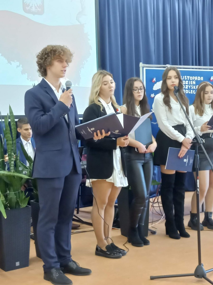 Inscenizację słowno-muzyczną przygotowała młodzież z klas 1E, 2LE, 3AG, 2aw, 1f wraz z wychowawcami. W akademii oprócz wierszy, faktów historycznych znalazły się pieśni patriotyczne wykonane przez chór. Występujący zostali nagrodzeni brawami, a recytacje i śpiew wywarły duże wrażenie oraz wprowadziły słuchaczy w podniosły nastrój naszego narodowego święta.