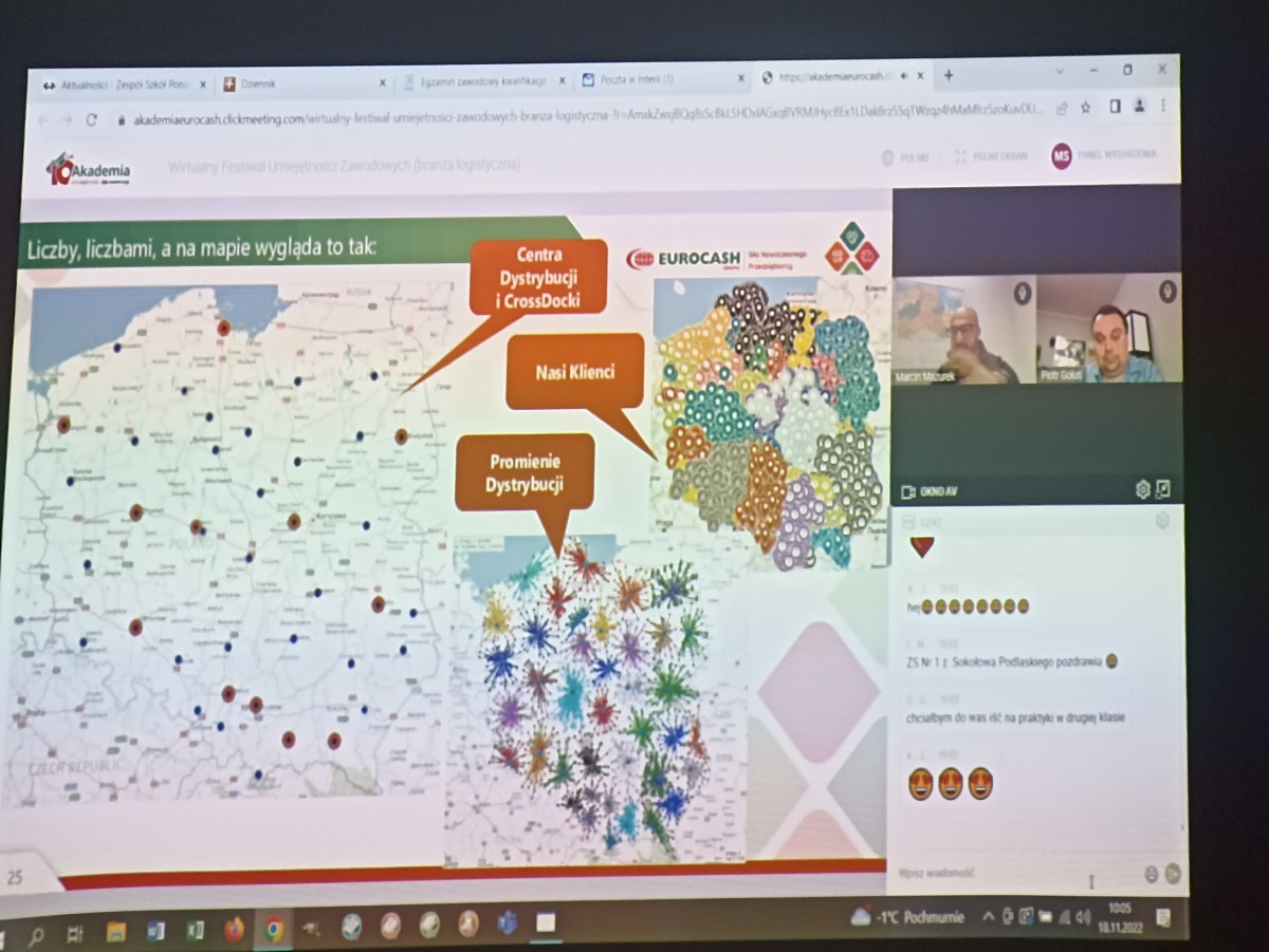 Akademia Umiejętności Eurocash zorganizowała 18.11.2022r. wirtualny festiwal umiejętności zawodowych pod hasłem „Transport w logistyce”, w którym udział wzięły klasy 4LG i 4TL.