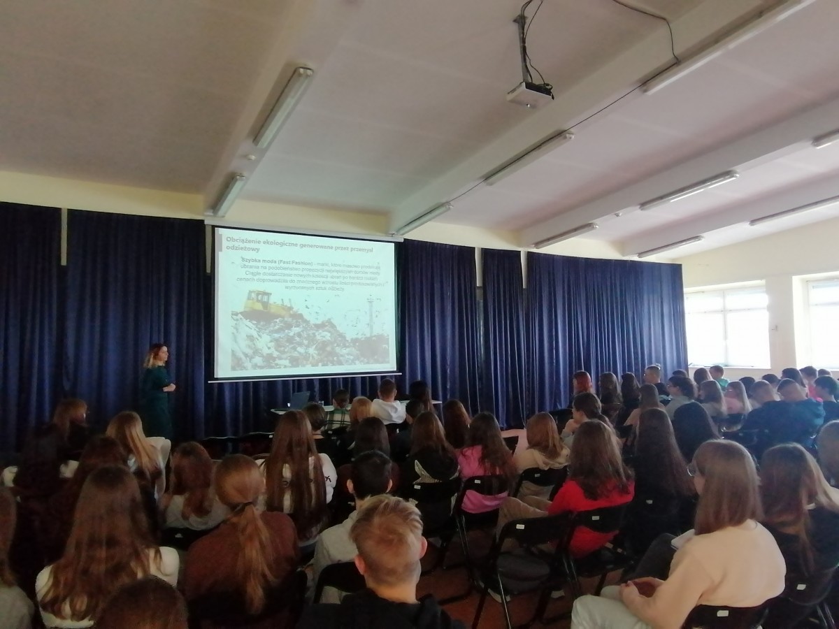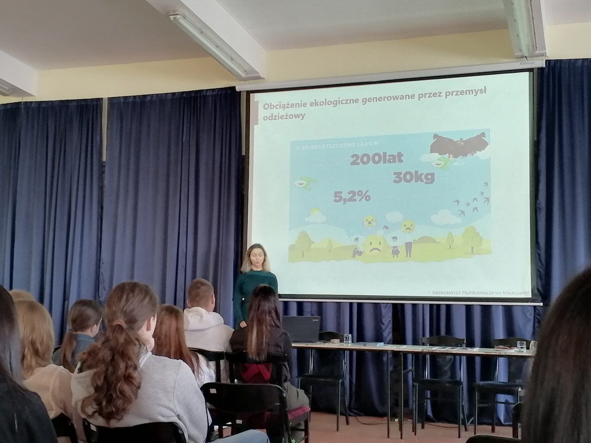 W czwartek, 24 listopada, gościliśmy w naszej szkole nauczycieli akademickich Uniwersytetu Wrocławskiego. Pani dr hab. inż. Justyna Hachoł wygłosiła bardzo ciekawy wykład pt. "Branża odzieżowa a bezpieczeństwo środowiska".
