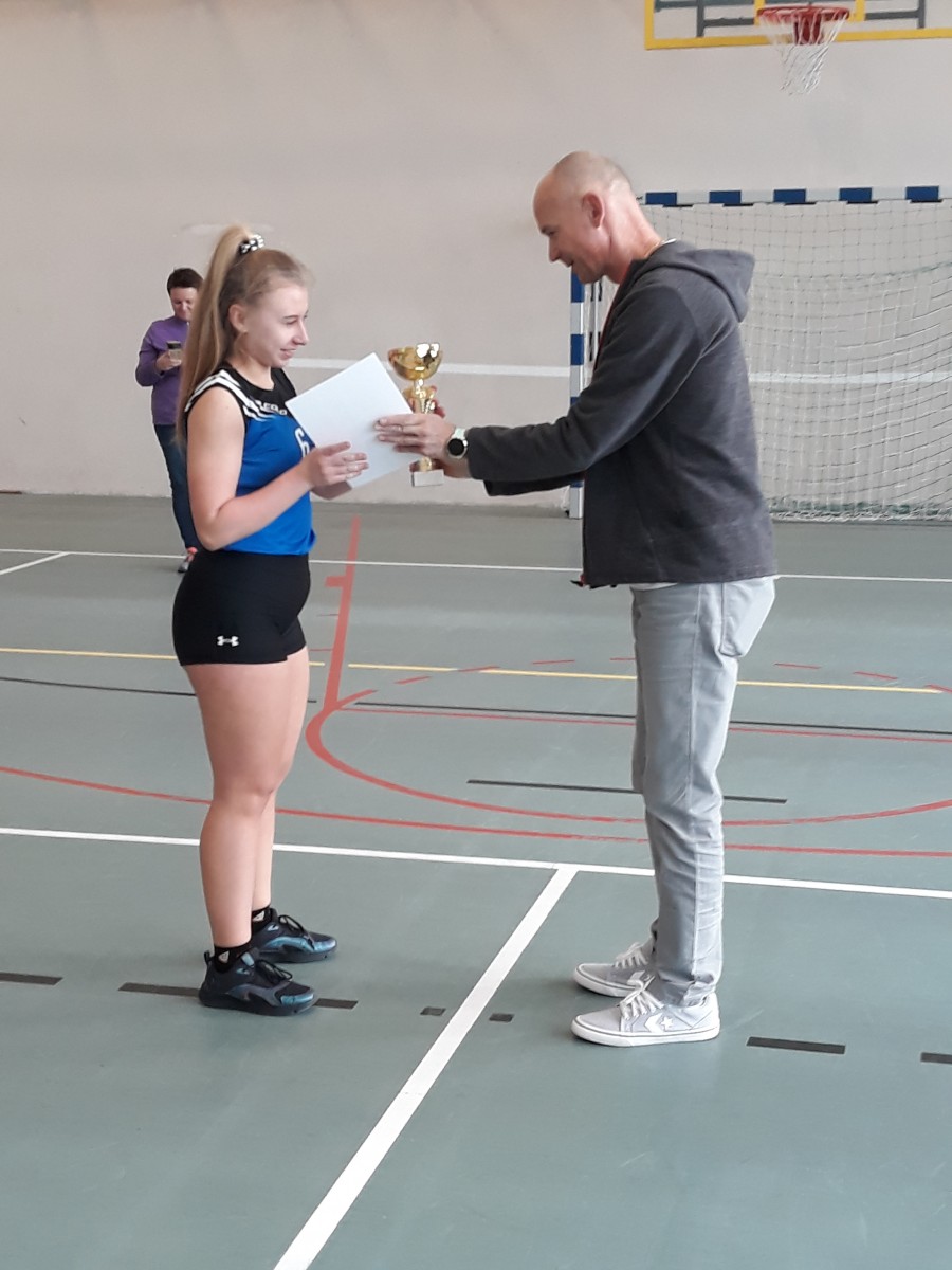 Dziewczęta grające w składzie: Wiktoria Bździuch kl.4SGH, Natalia Kipiniak kl.4TL, Monika Tyszecka kl.4TL, Kinga Lasek kl.2LE, Paula Szatkowska kl.2LE, Oliwia Jurewicz kl.1L i Kornelia Mazur kl.1R wywalczyły w tym turnieju pierwsze miejsce. W rywalizacji dziwczyny swoim rywalkom nie pozwoliły sobie odebrać zwycięstwa w żadnym secie. Wywalczyły pamiątkowe: dyplom i puchar, które z rąk Pana Dytektora mgr Dariusza Janasia odebrała kapitan drużyny.