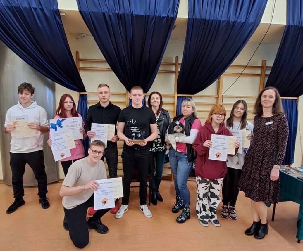 W piątek 03.marca odbyło się w naszej szkole podsumowanie akcji charytatywnej „Psu na budę”na rzecz schroniska dla zwierząt małych w Dłużynie Górnej. Akcja trwała od października do grudnia 2022.