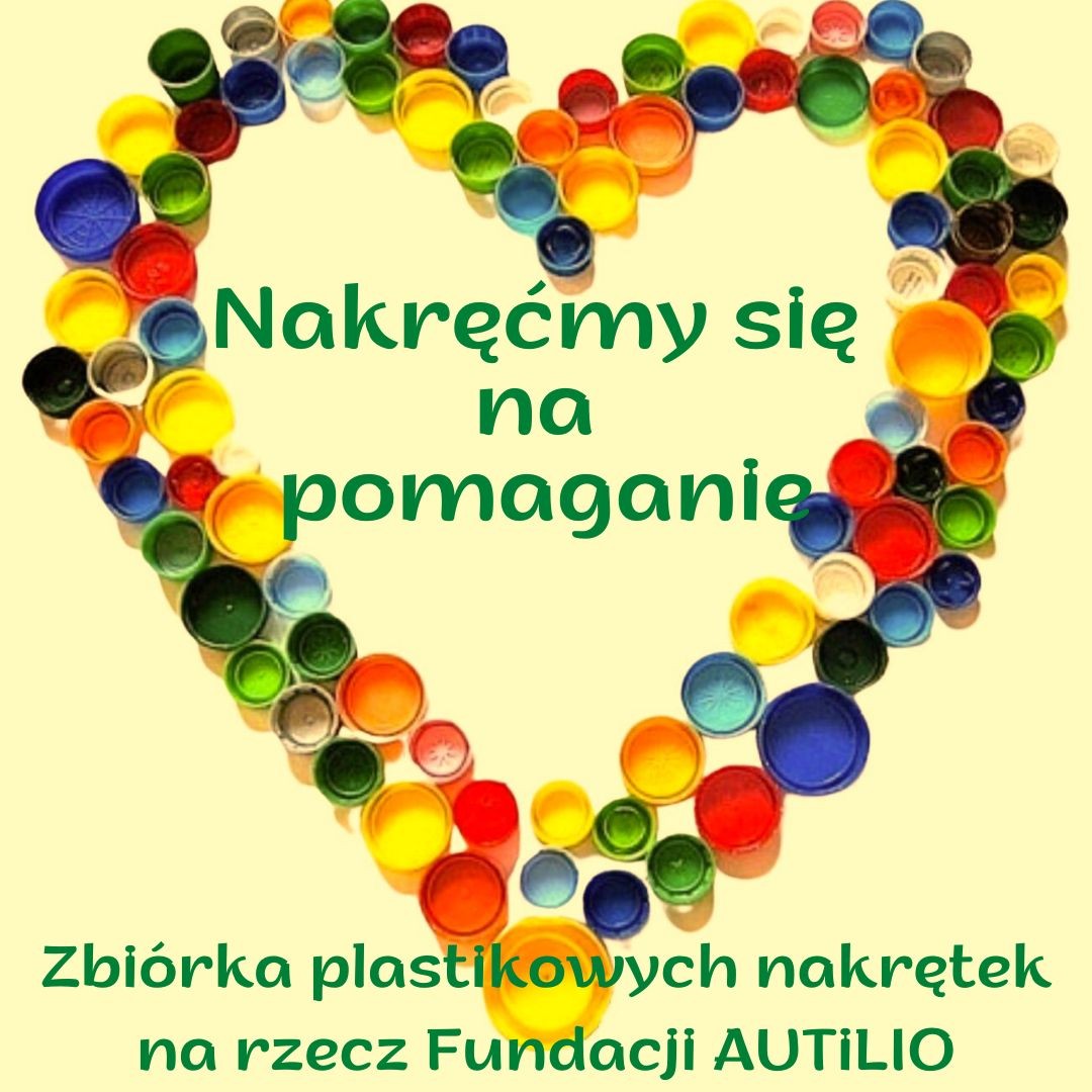 Dlatego przypominamy o trwającej przez cały rok akcji zbierania plastikowych nakrętek w naszej Szkole na rzecz dzieci z Fundacji AUTiLIO.