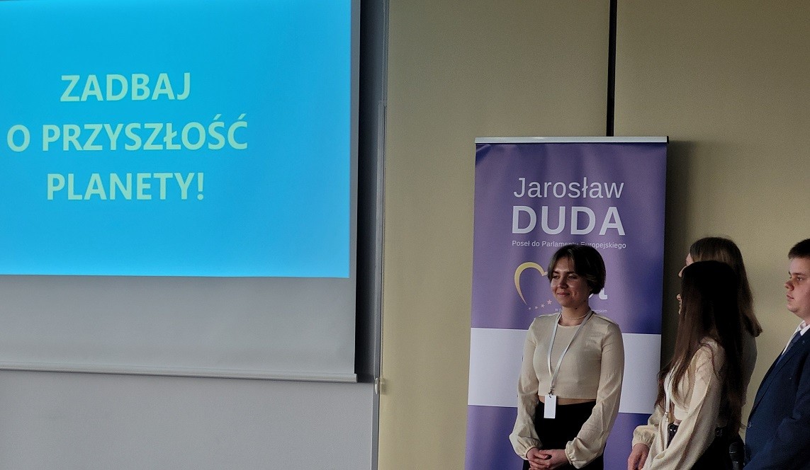Naszą szkołę reprezentowali: Natalia Wajda, Żaneta Sidorczuk, Julia Goranin i Bartosz Rudnik z projektem ZADBAJ O PRZYSZŁOŚĆ PLANETY. Walczyli oni z dziesięcioma innymi drużynami o wyjazd studyjny do Parlamentu Europejskiego w Brukseli. Nie udało się, ale sam udział w konkursie był wspaniałą przygodą.
