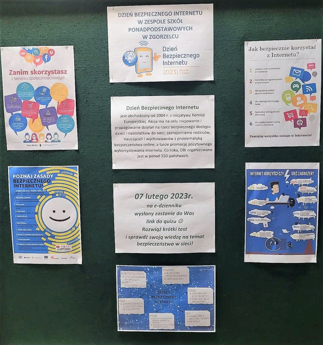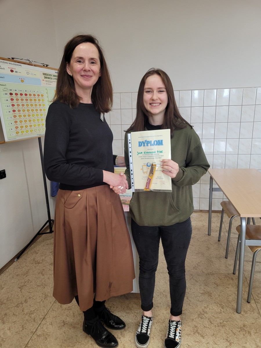 Koordynator szkolny wziął udział w Gali Dnia Bezpiecznego Internetu, a nasza młodzież zaangażowała się w DBI poprzez udział w lekcji prowadzonej online przez organizatorów. Uczniowie Technikum i Branżowej Szkoły I Stopnia mieli możliwość rozwiązania testu i sprawdzenia swojej wiedzy na temat bezpieczeństwa w sieci. W teście wzięło udział 128 uczniów.