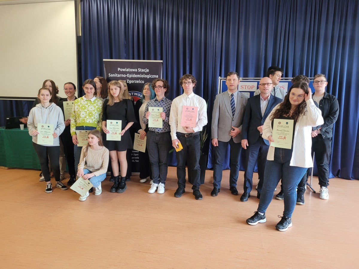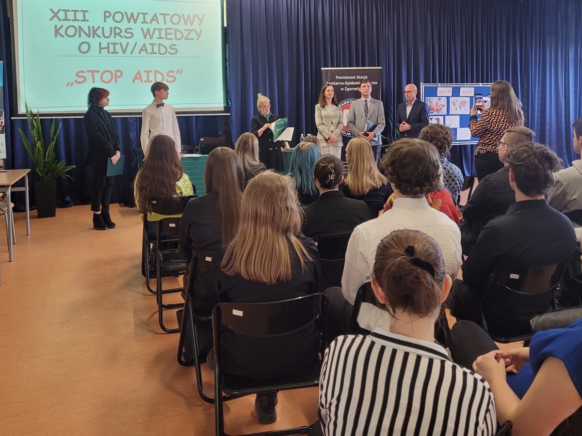 19 kwietnia br. w naszej szkole odbył się Powiatowy Konkurs Wiedzy o HIV/AIDS dla uczniów szkół ponadpodstawowych. Od 13 lat organizatorami konkursu jest Powiatowa Stacja Sanitarno - Epidemiologiczna w Zgorzelcu oraz Pani Dorota Kołodzińska z ramienia Zespołu Szkół Ponadpodstawowych w Zgorzelcu.