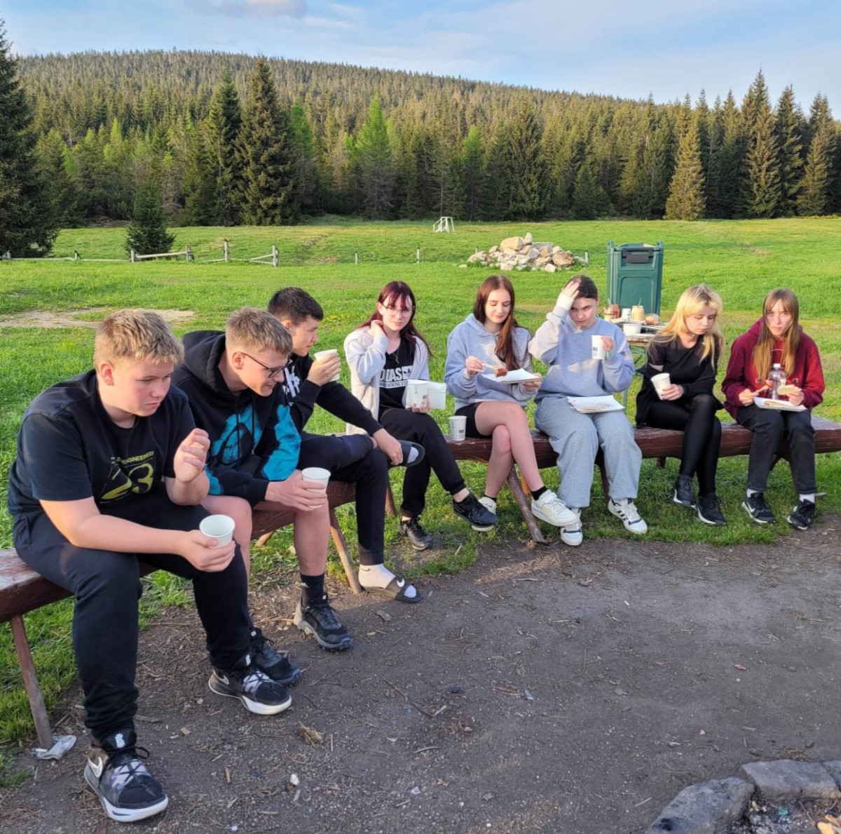 Punkt trzeci na zakończenie wymagającego dnia to ognisko z kiełbaskami, piankami i ciepłą herbatką. A także integracji - w grupie i podgrupach - ciąg dalszy.