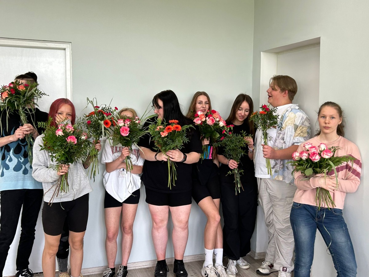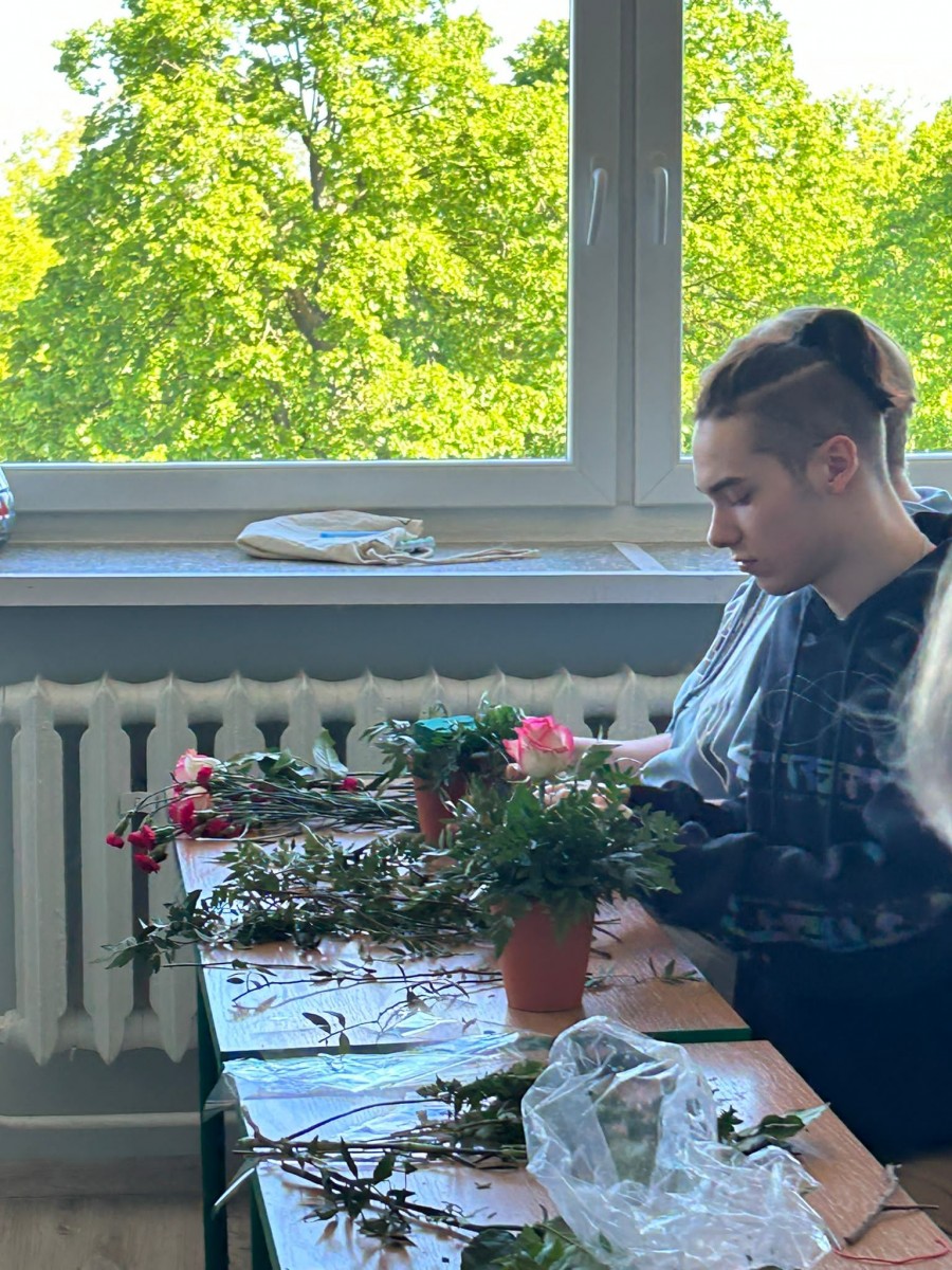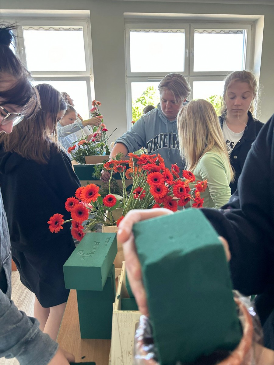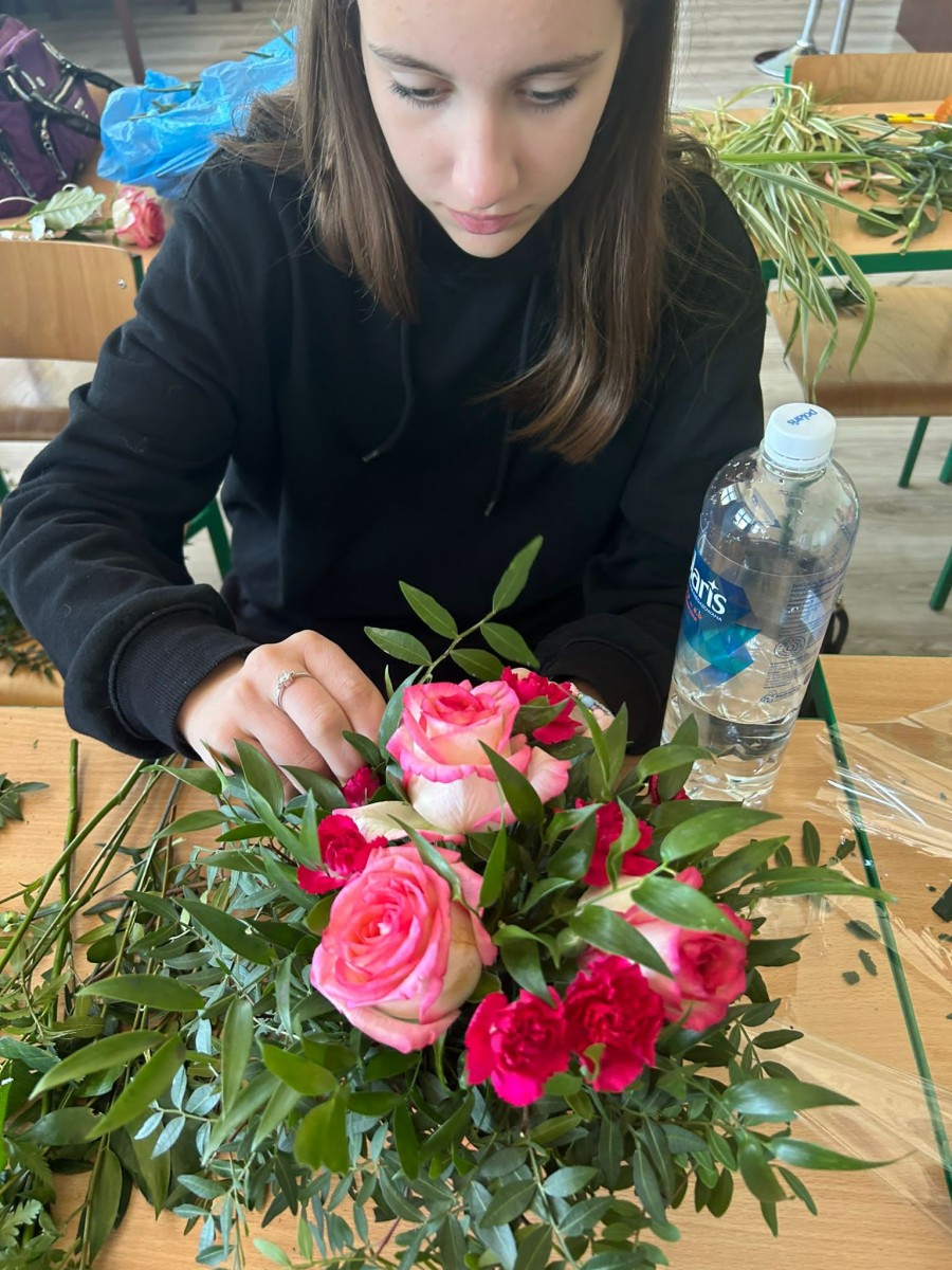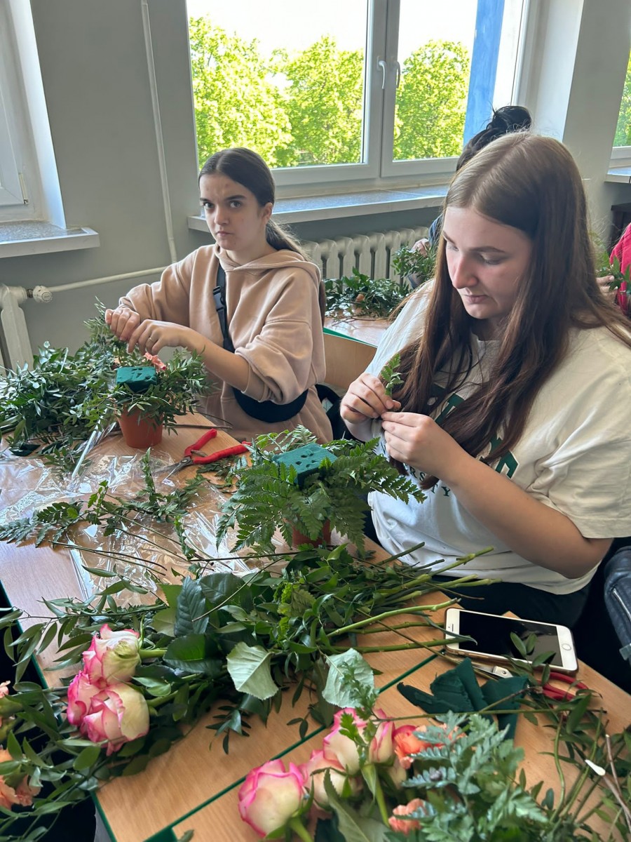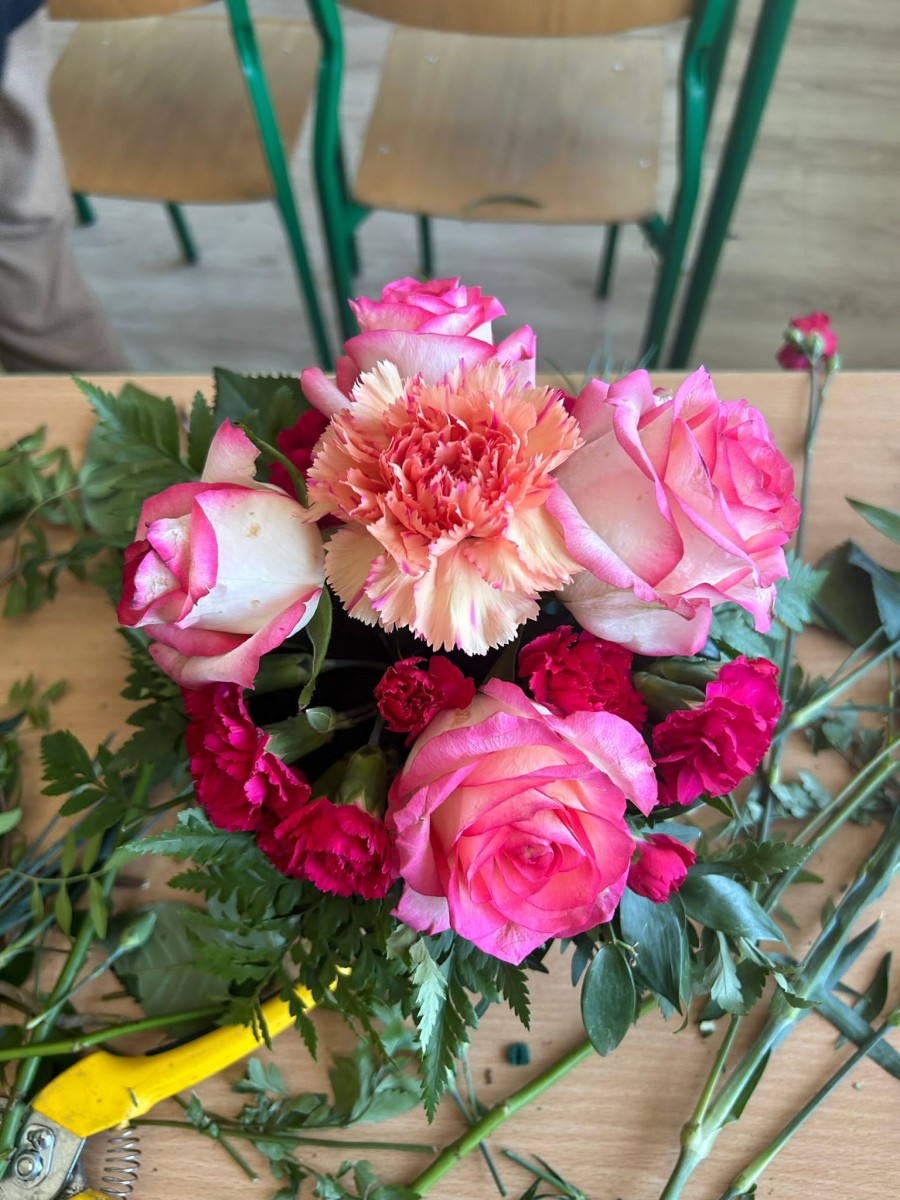 Zajęcia z florystyki ??? Nie, nie. To warsztaty z dekoracji stołów konsumenckich świeżym kwiatami. Zajęcia dla technikum żywienia i usług gastronomicznych w ramach projektu „Zawód przyszłości”.