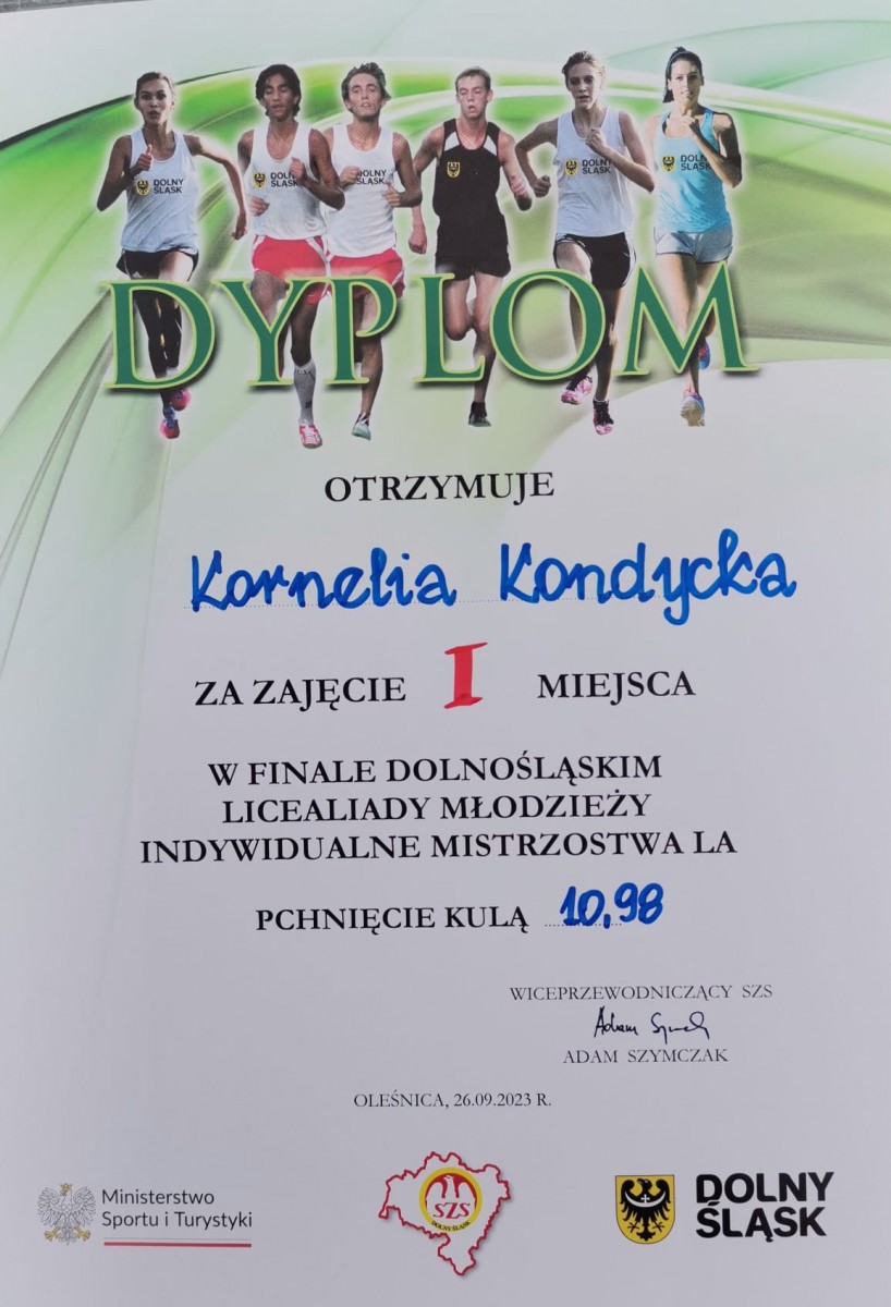 Dziewczęta pod opieka mgr Jolanty Wdowskiej występowały w następującym składzie: Fras Natalia kl.IG; Spendowska Kinga kl.IA; Spendowska Kornelia kl.IA; Czerniawska Julia kl.IIAH; Pałuska Wiktoria kl.IA; Puzdrakiewicz Nikola kl.Ifw; Zasadzińska Marcjanna kl.Ifw; Wieczorek Maria kl.IIIBS; Ostrowska Weronika kl.Ikw; Kondycka Kornelia kl.ISE; Majewicz Zuzanna kl.IR; Woźniak Ilona kl.Ifw; Michalak Laura kl.IG. Najlepszy wynik indywidualny uzyskała Kornelia Kondycka, która wygrała konkurs pchnięcia kulą.