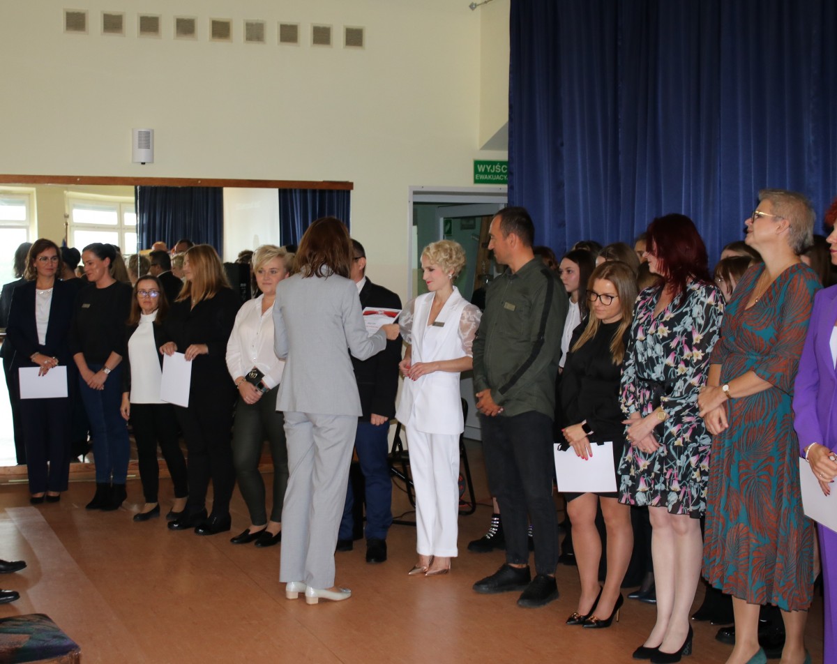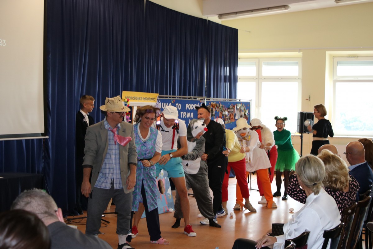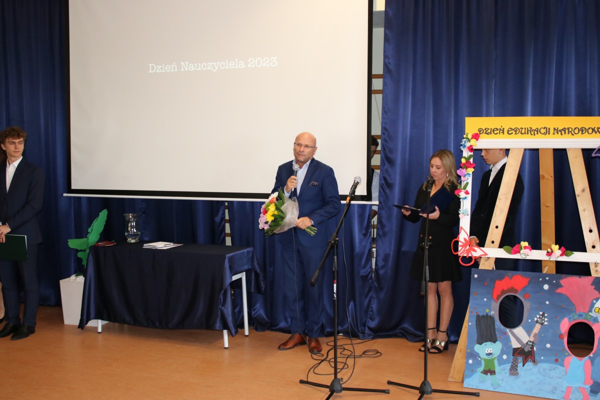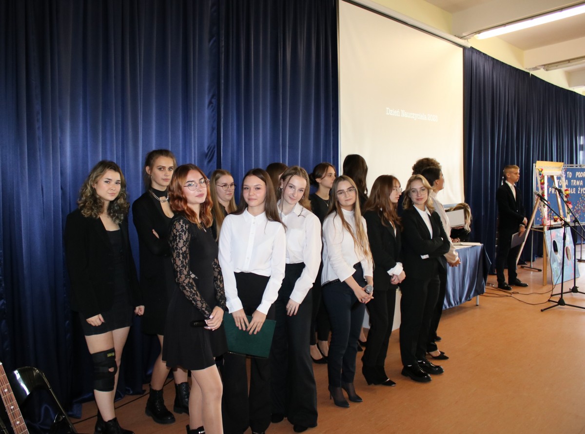 Dnia 12.10.2023 r. obchodziliśmy w naszej szkole Dzień Edukacji Narodowej. Dzień w którym uczniowie wyrażają wdzięczność i uznanie dla pięknej, aczkolwiek trudnej pracy pedagogów. Dzięki wspólnemu zaangażowaniu uczniów i nauczycieli uczestniczyliśmy w pięknie przygotowanym apelu. Było uroczyście, wesoło i kolorowo.