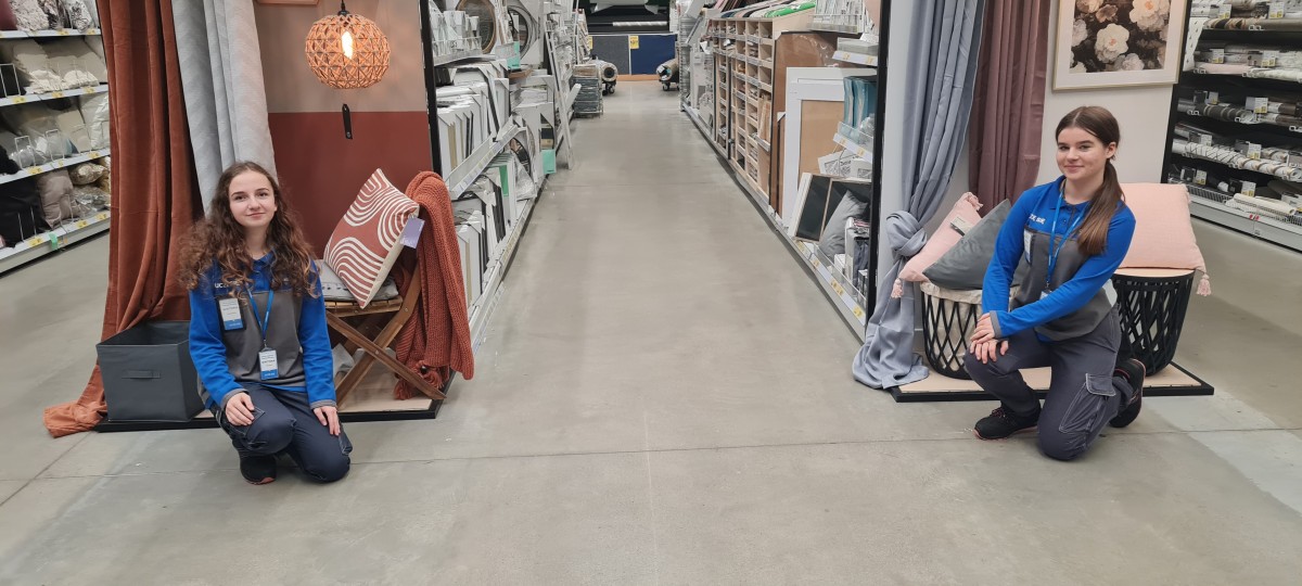 Nikola, Wiktoria i Zuzia są już pewne, że to idealny zawód dla nich. Swoją przygodę, jako uczennice klasy patronackiej rozpoczęły od sektora dekoracyjnego. Dziewczęta poznają niezbędne produkty, które pozwolą nadać domowi wymarzony klimat. Na pierwszy rzut oka widać, że uczennice odnajdują się na sektorze niczym ryby w wodzie.