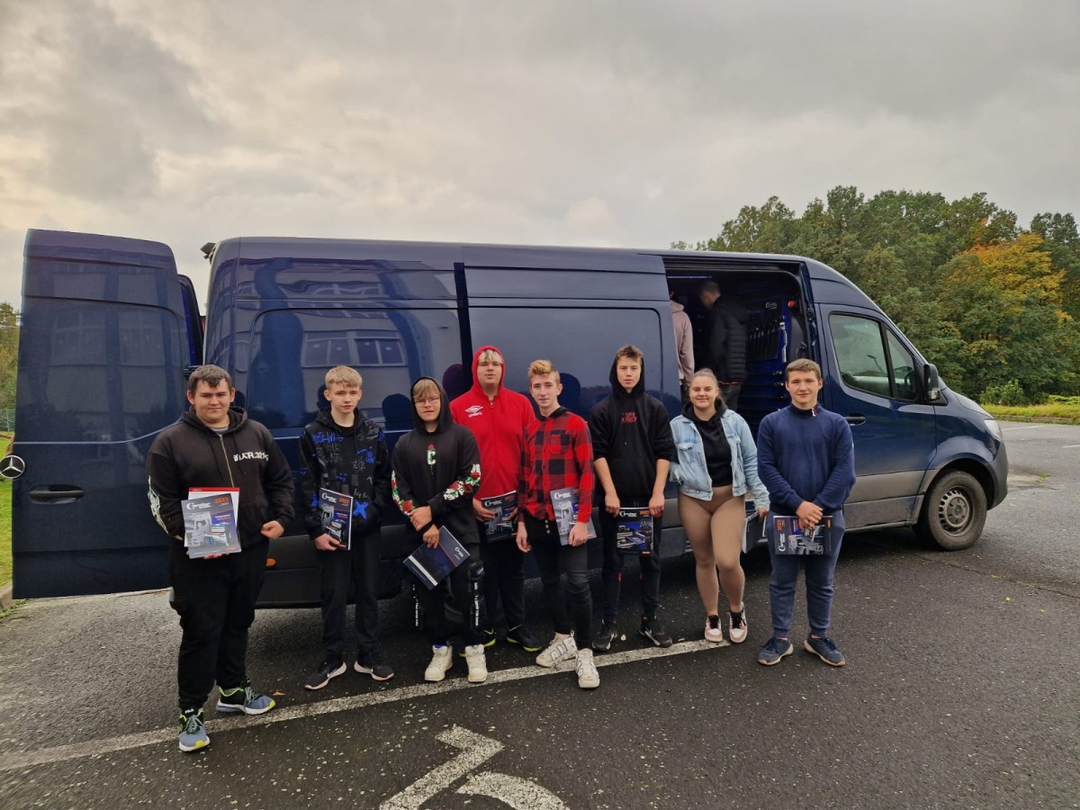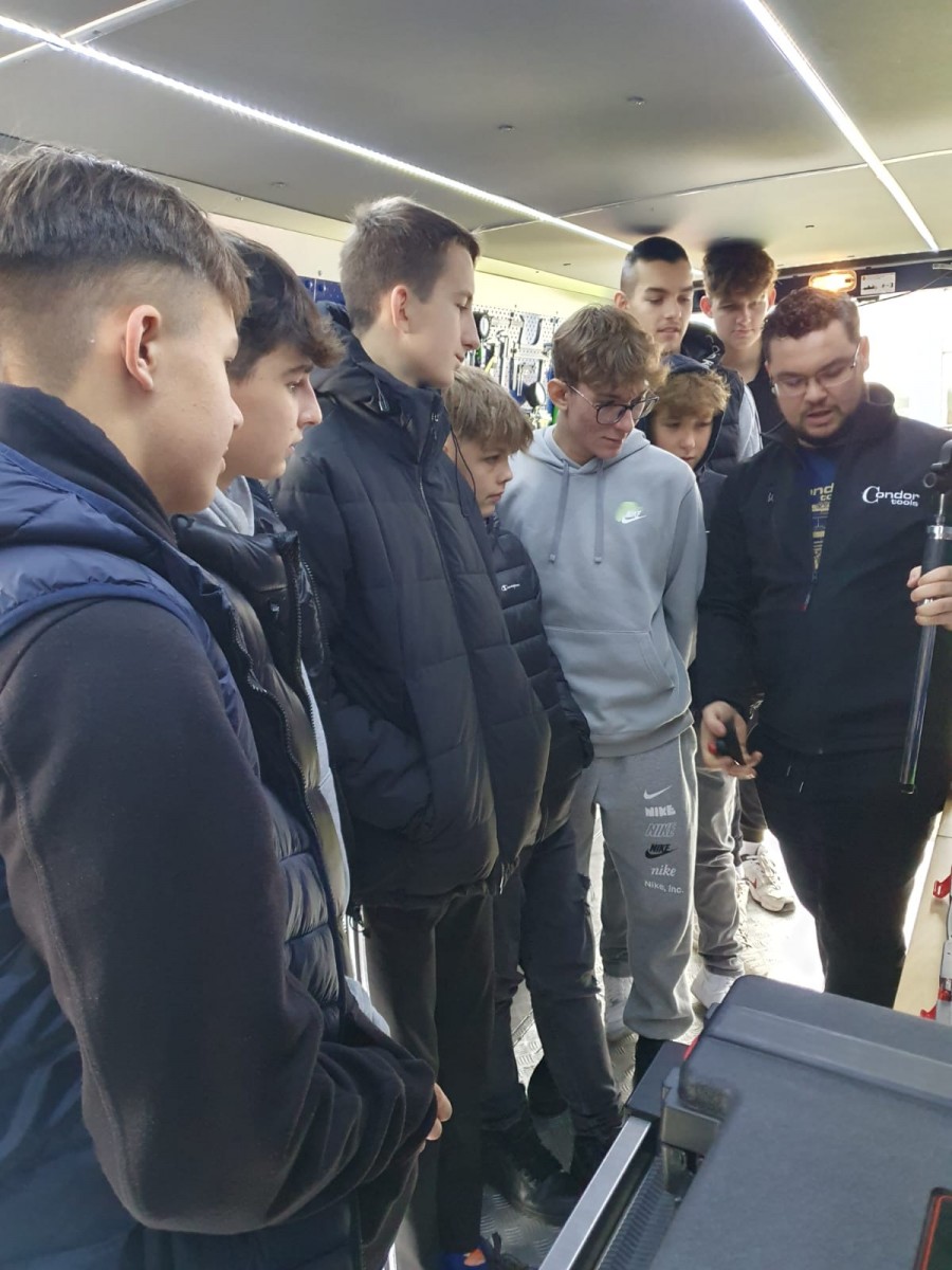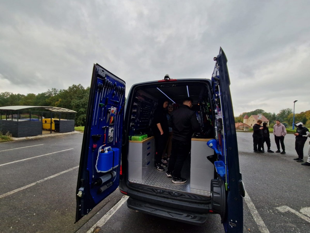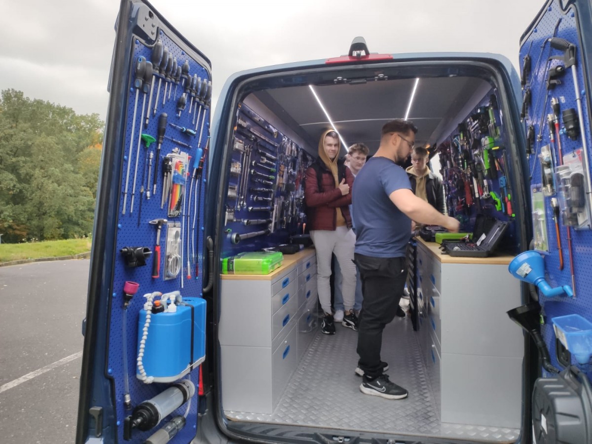 Prezentacja narzędzi w specjalnie przystosowanym narzędziobusie z firmy Condor Tools z Zielonej Góry dla klas o kierunku samochodowym i elektrycznym.