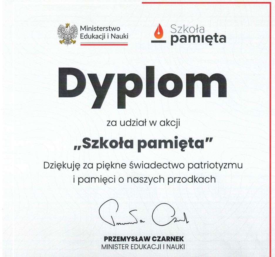Emilka z dyplomem ogólnopolskiej akcji MEN "Szkoła Pamięta"