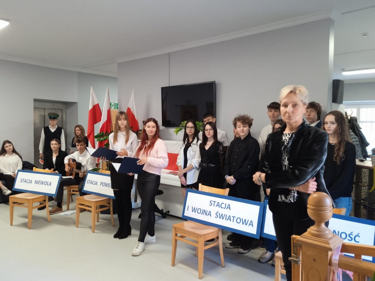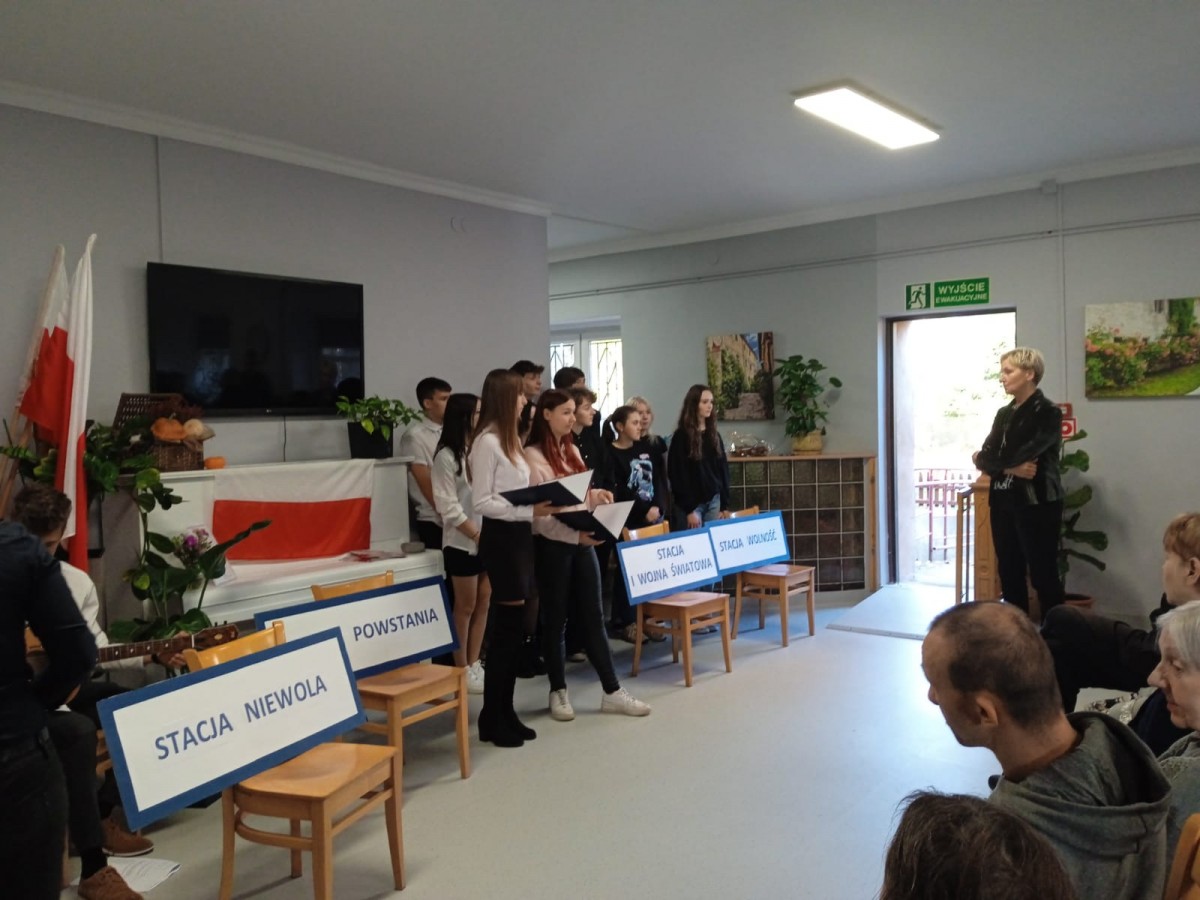 „Pociąg do wolności” – ten symboliczny tytuł stał się hasłem przewodnim tegorocznej akademii przygotowanej w ZSP z okazji 105. rocznicy odzyskania przez Polskę niepodległości. W piątek młodzież naszej szkoły miała przyjemność wystąpić przed swoimi koleżankami i kolegami, a dzisiaj udała się z programem do DPS Jutrzenka. Po występie artyści zostali zaproszeni na słodki poczęstunek oraz wspólne śpiewanie pieśni patriotycznych.