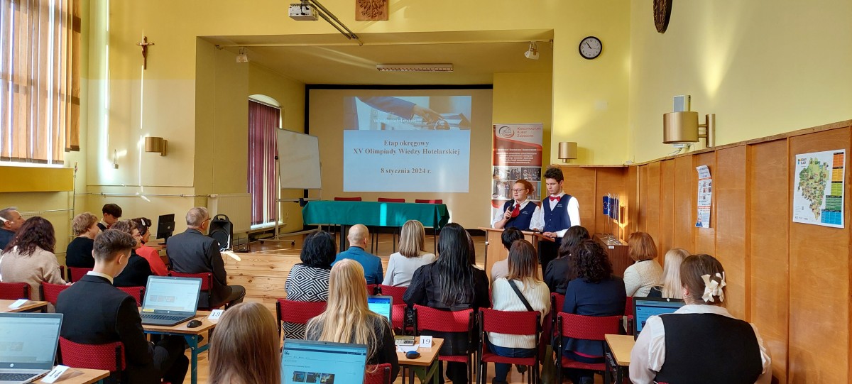 Dnia 8 stycznia 2024 r. dwie uczennice kl. 5 technikum hotelarstwa: Małgorzata Klęczar oraz Zuzanna Bąk wraz z nauczycielką p. Moniką Tymińską wzięły udział w etapie okręgowym XV Olimpiady Wiedzy Hotelarskiej w Jeleniej Górze. Wcześniej uczennice wygrały etap szkolny Olimpiady.
