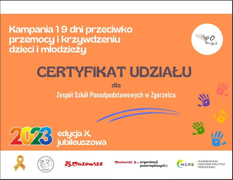 1 listopada 2023 – w tym dniu ruszyła międzynarodowa kampania “19 dni przeciwko przemocy wobec dzieci i młodzieży”.