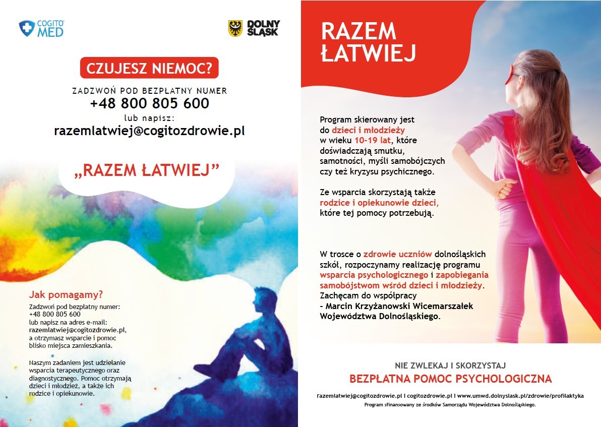 Do programu zgłaszać się mogą dzieci i młodzież w wieku 10- 19 lat, zamieszkujące województwo dolnośląskie. Zgłoszenia może dokonać także rodzic lub opiekun prawny. Pomoc można uzyskać pod numerem telefonu infolinii 800 805 600 lub pod adresem e-mail razemlatwiej@cogitozdrowie.pl (wówczas pracownik infolinii skontaktuje się telefonicznie).
