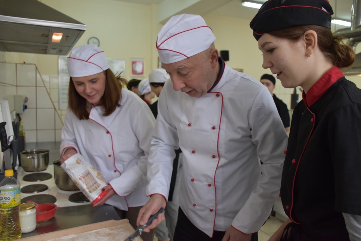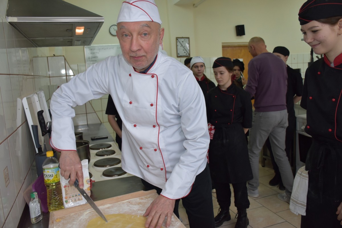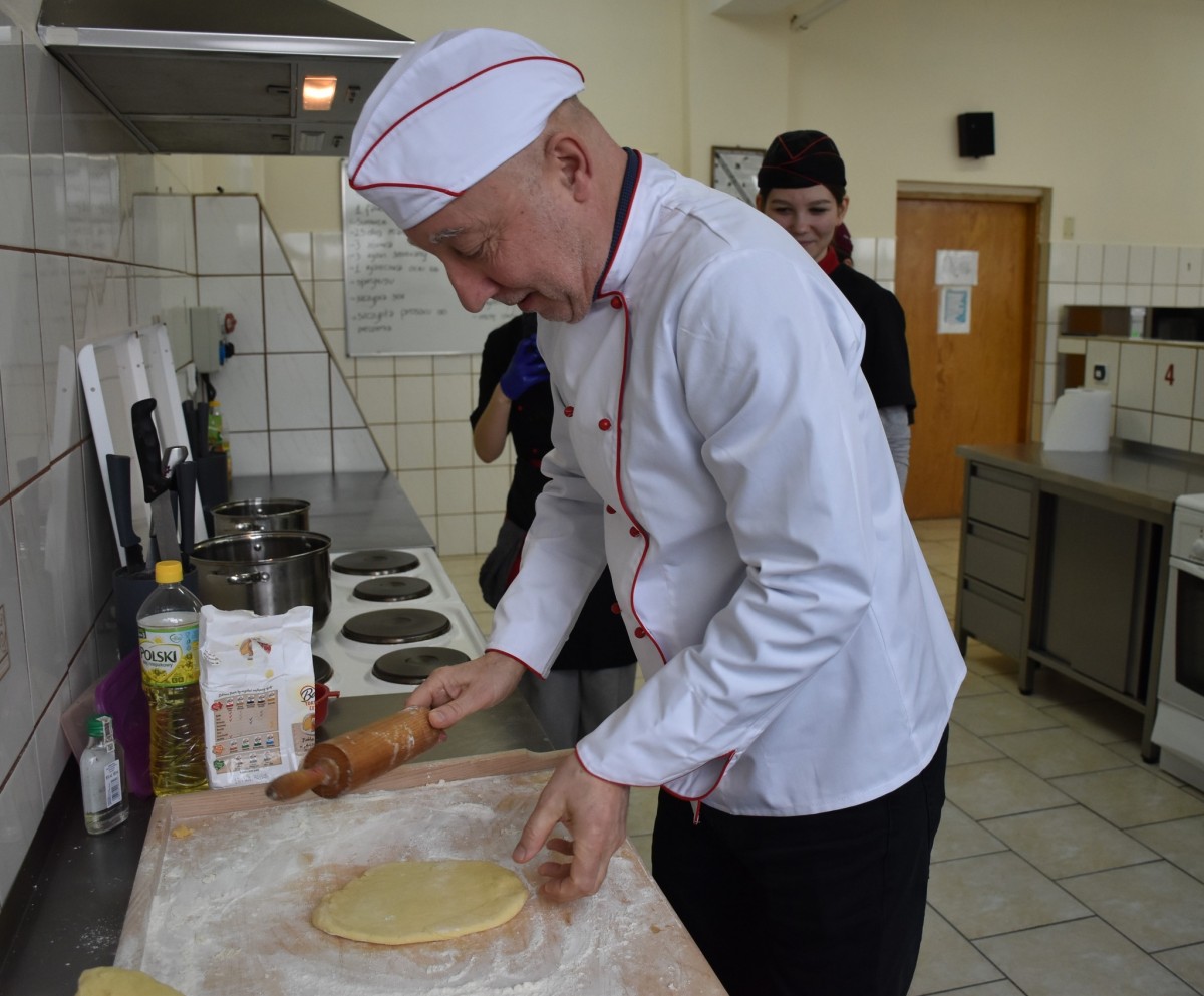 Podobnie, jak w latach ubiegłych do grona pomocników dołączył Starosta Zgorzelecki Artur Bieliński, który pod bacznym okiem młodych cukierników, uczył się prawidłowego smażenia smakołyków