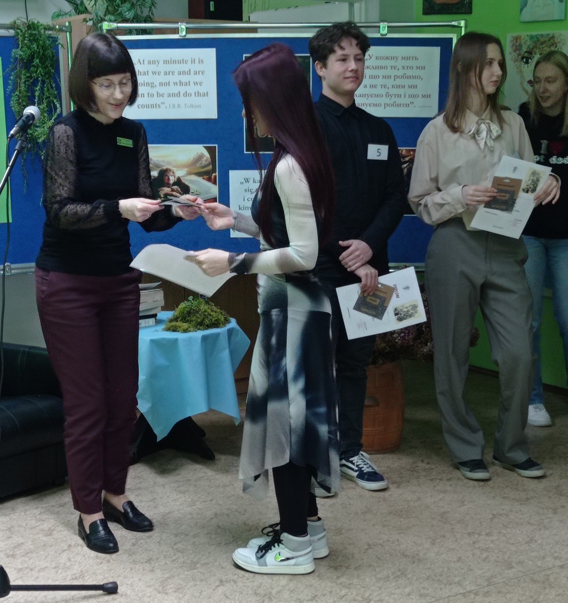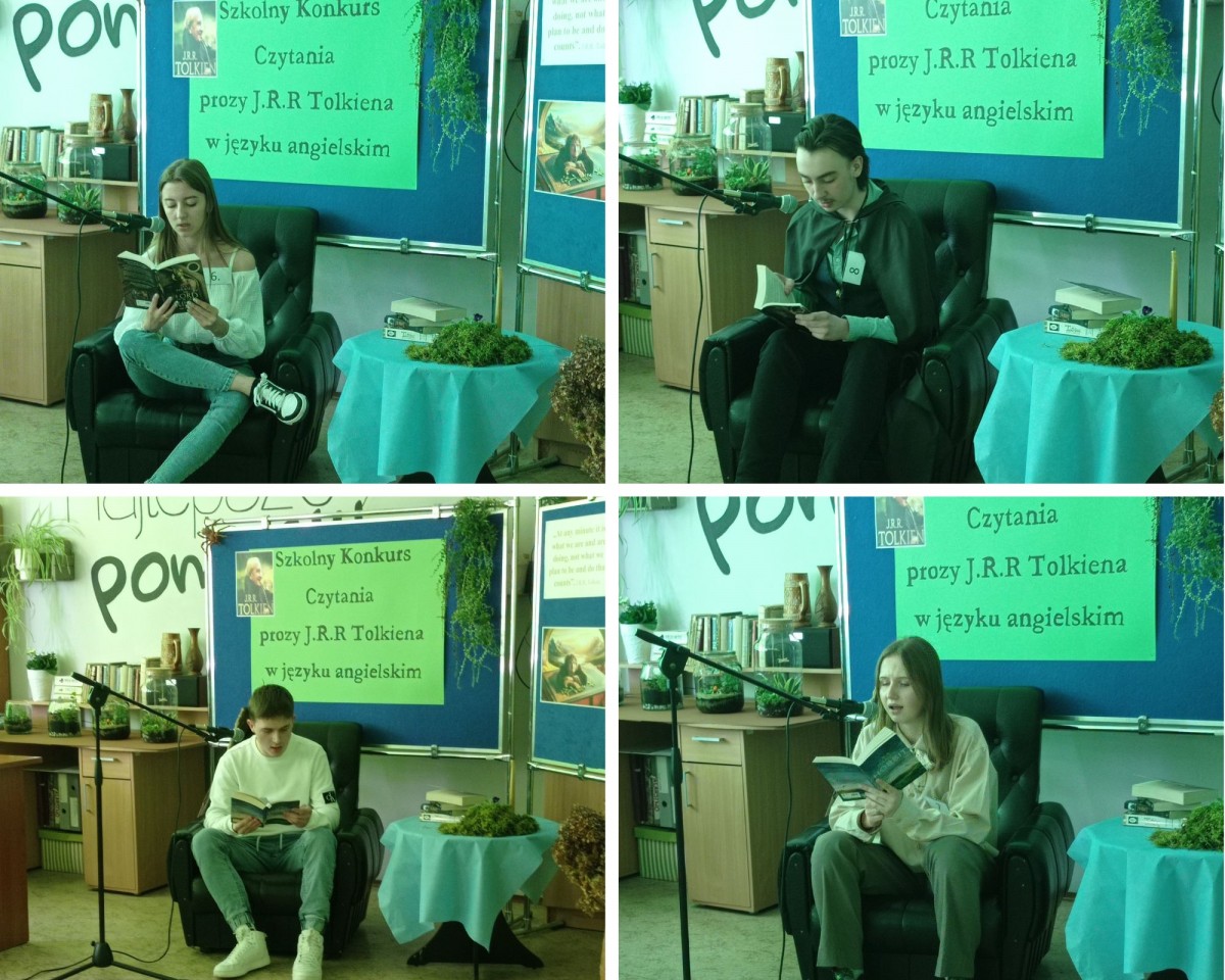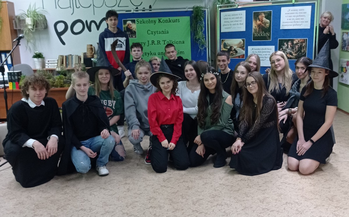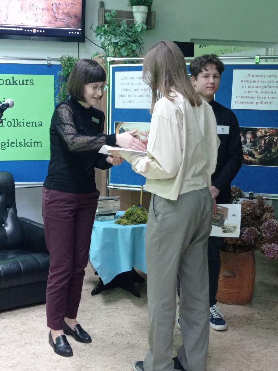 Spotkanie pięknie poprowadzili: Weronika Senkowska, Szymon Goś, Maryna Yefremova z kl.3LE oraz Maksym Babii z kl.1SE. Prezentując się w strojach nawiązujących do postaci występujących w czytanych dziełach przedstawili krótki życiorys pisarza, a następnie przed każdym występem prezentowali ciekawostki z życia J.R.R. Tolkiena, które zostały odczytane w językach: polskim i ukraińskim.