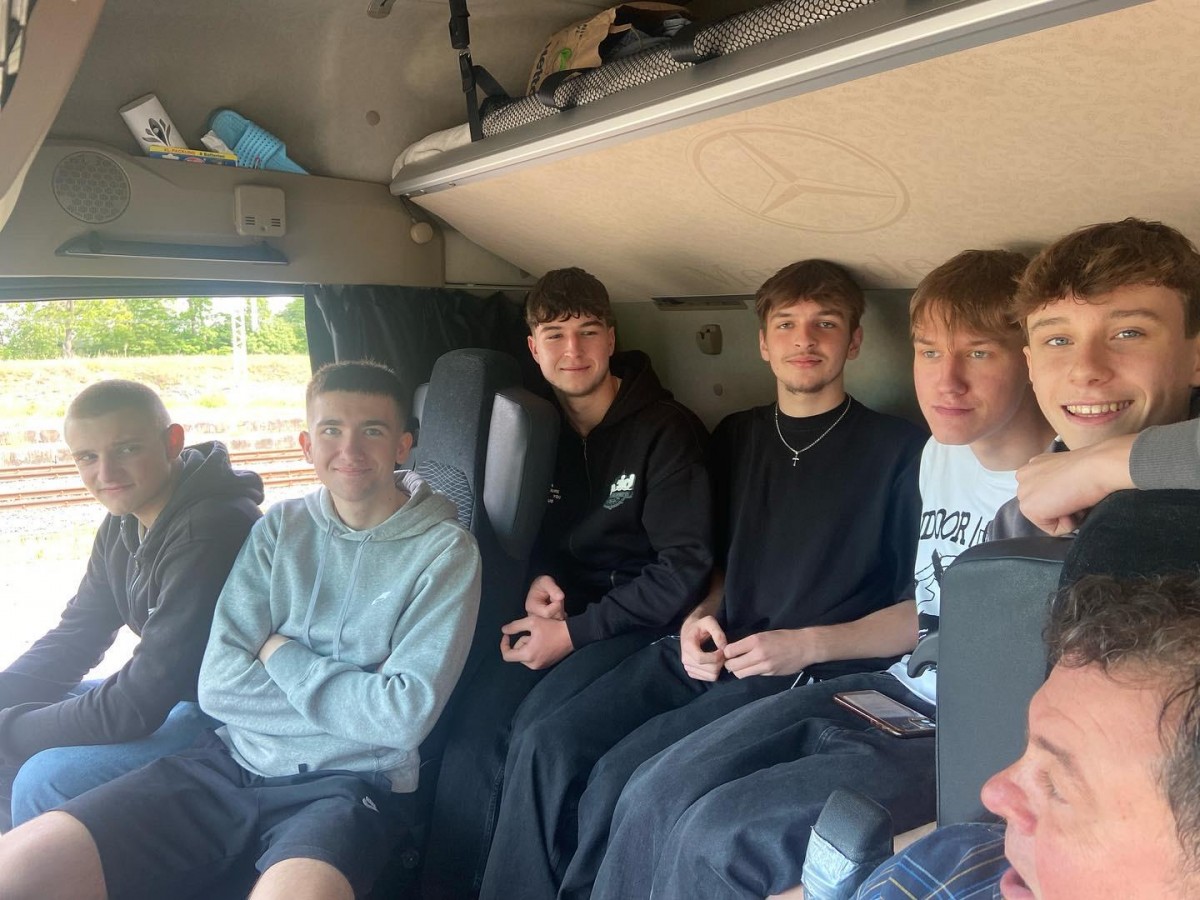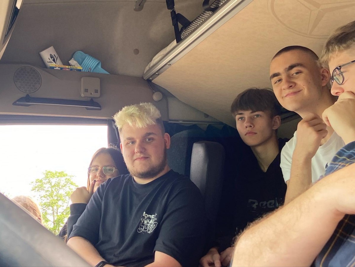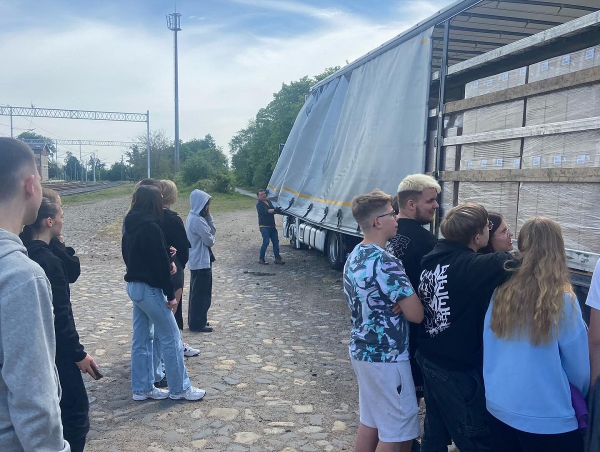 Pan Grzegorz Gosiewski - zawodowy kierowca i wlaściciel firmy transportowej jadąc z ładunkiem do Francji zgodził się pokazać nam zasady obsługi ciągnika z naczepą, mocowanie ładunku oraz zasady pracy kierowcy w trasie.... Mogliśmy wejść do kabiny kierowcy, zobaczyć jak wszystko wygląda z góry, obejrzeć tachografy i posłuchać o pracy kierowcy w trasie..... Dziękujemy.....