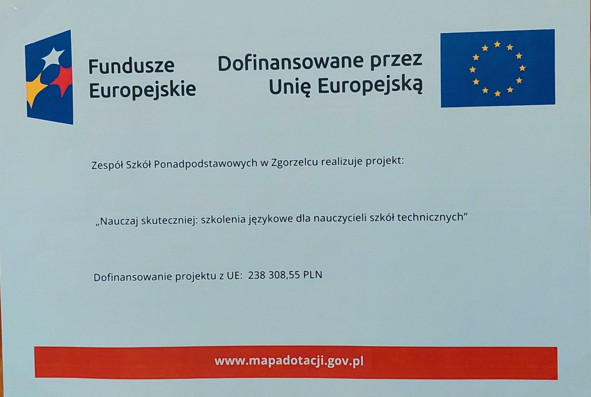 Projekt „Nauczaj skuteczniej: szkolenia językowe dla nauczycieli szkół technicznych” realizowany w ramach programu FUNDUSZE EUROPEJSKIE DLA ROZWOJU SPOŁECZNEGO 2021-2027 współfinansowanego z Europejskiego Funduszu Społecznego Plus