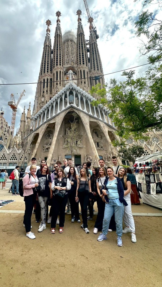 Był też czas na zapoznanie się z pięknym miastem w ramach Walking tour in English z lokalnym przewodnikiem Diego. Grupa wybrała się także na wycieczkę do Barcelony. Zaczynając od Sagrady Familii, uważanej za symbol Barcelony podążyliśmy szlakiem architektury Gaudiego odwiedzając: Case Mile, Case Amatller oraz Case Batlo. Na naszym szlaku nie zabrakło również katedry oraz kościoła Santa Maria del Mar. Na najbardziej rozpoznawalnej alei La Rambla, mogliśmy po raz kolejny poznać lokalne smaki oraz kulturę Hiszpanii. Swoją podróż zakończyliśmy odpoczynkiem na barcelońskiej plaży.
