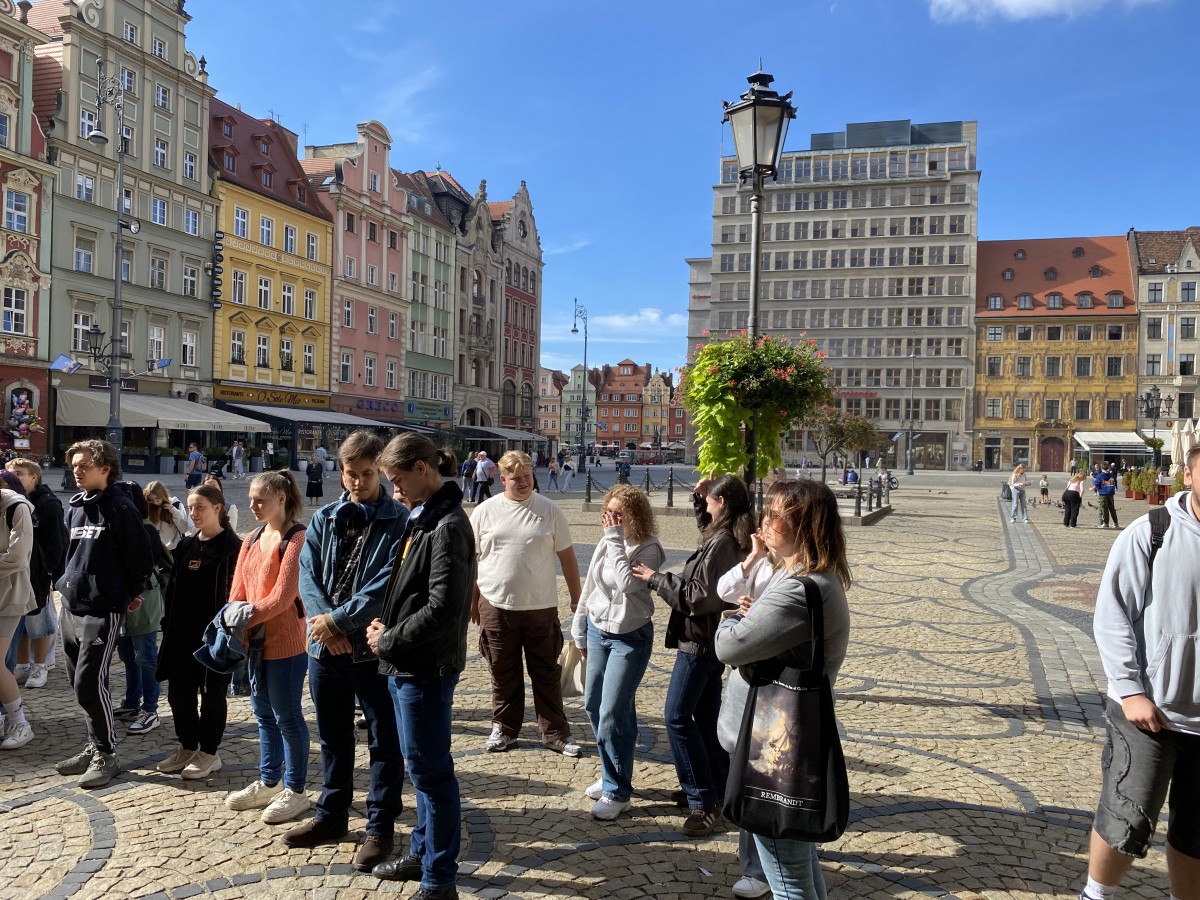 Drugim miejscem naszej wycieczki był znany wszystkim wrocławski Rynek, ale przedstawiony z historycznej strony przez przewodnika Przemka nabrał dla nas innego znaczenia.