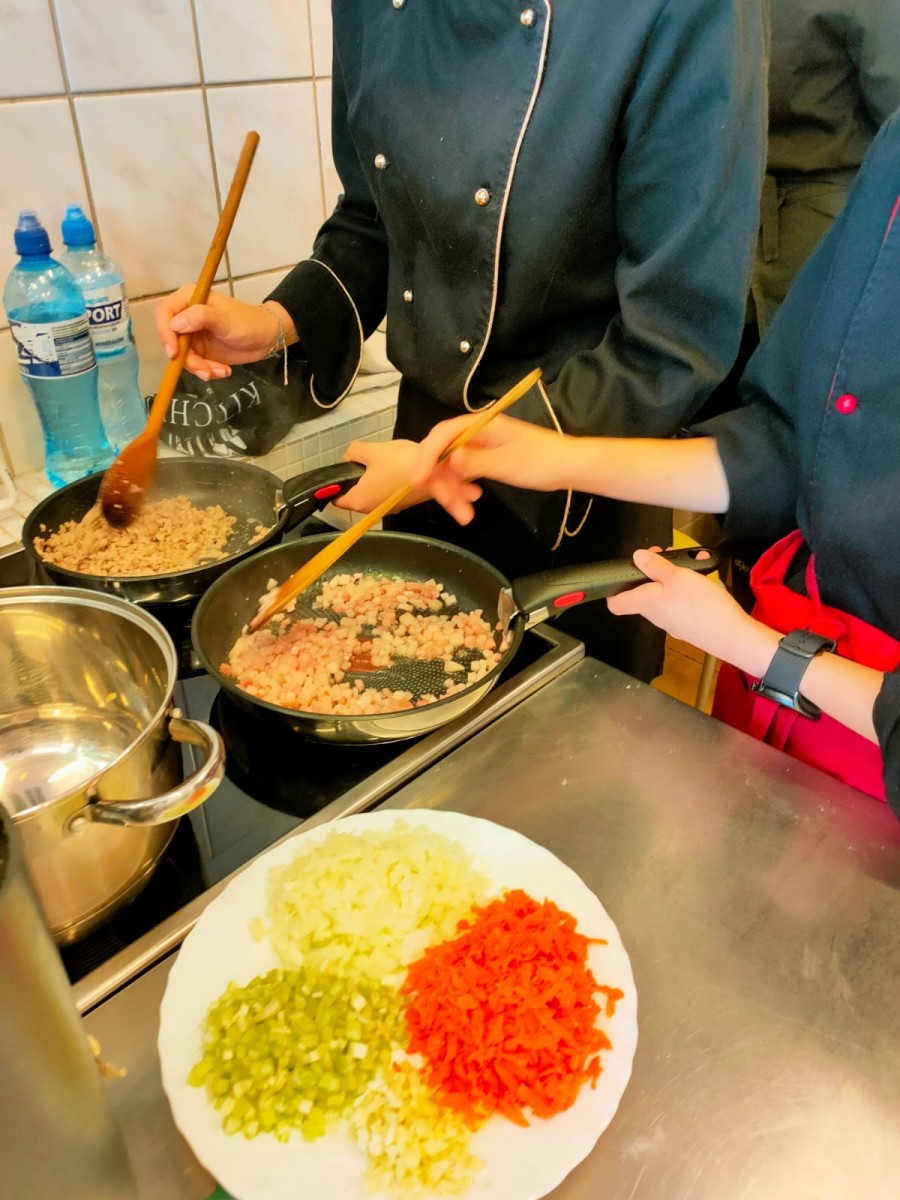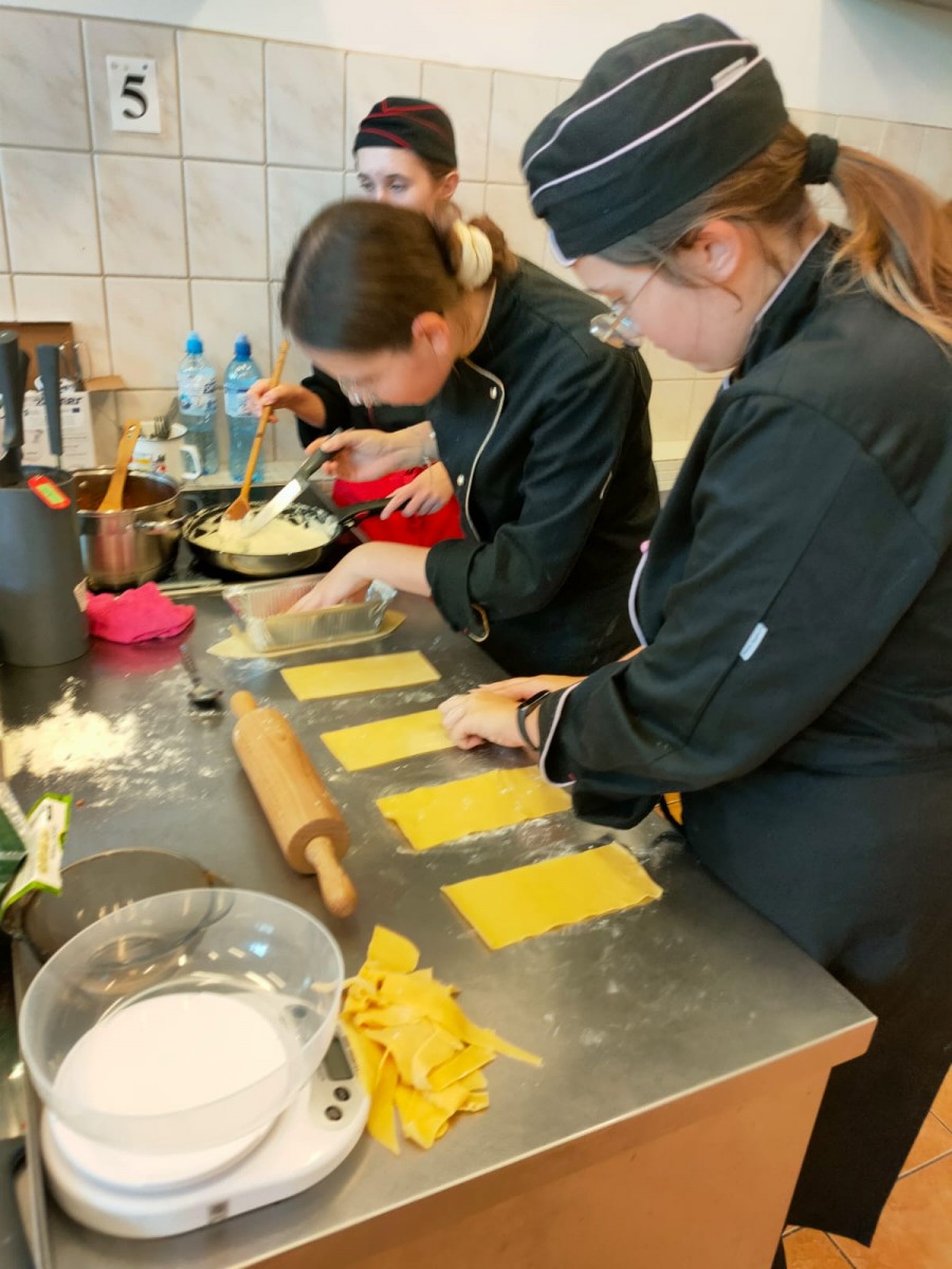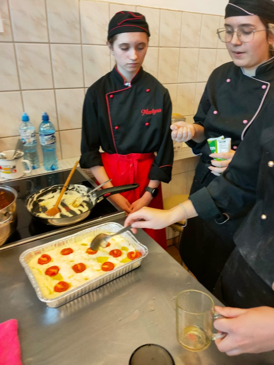 „Kuchnie świata”- cykl praktycznych zajęć szkoleniowych, które przybliżają naszym uczestnikom projektu odległe kraje. Tym razem zawędrowaliśmy do Włoch, gdzie oczywiście nie mogło zabraknąć bardzo znanych potraw takich jak Focaccia, tiramisu czy też spaghetti Bolognese. Zajęcia odbywają się w ramach projektu „Kariera zawodowców w naszych rękach bis” realizowanego przez UPEMI z Warszawy oraz Starostwo Powiatowe w Zgorzelcu. Zajęcia poprowadził Pan Darek Smolarczyk. Projekt w szkole prowadzony jest przez Panią Barbarę Karnikowską-Bożek oraz Panią Sylwię Kołodziejczyk. Poniżej fotorelacja