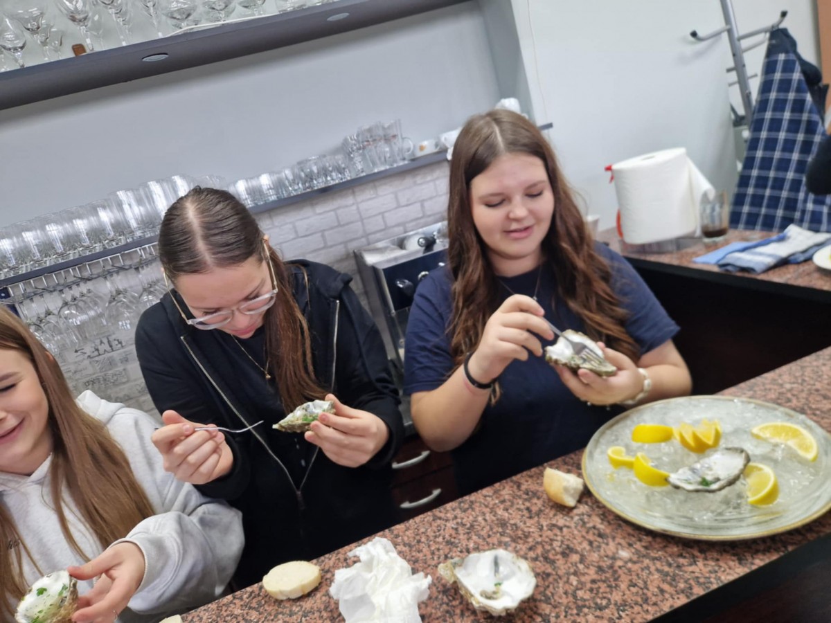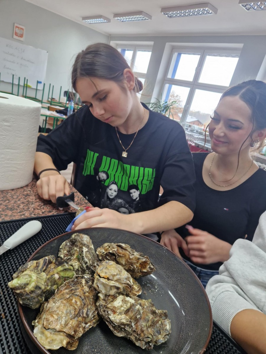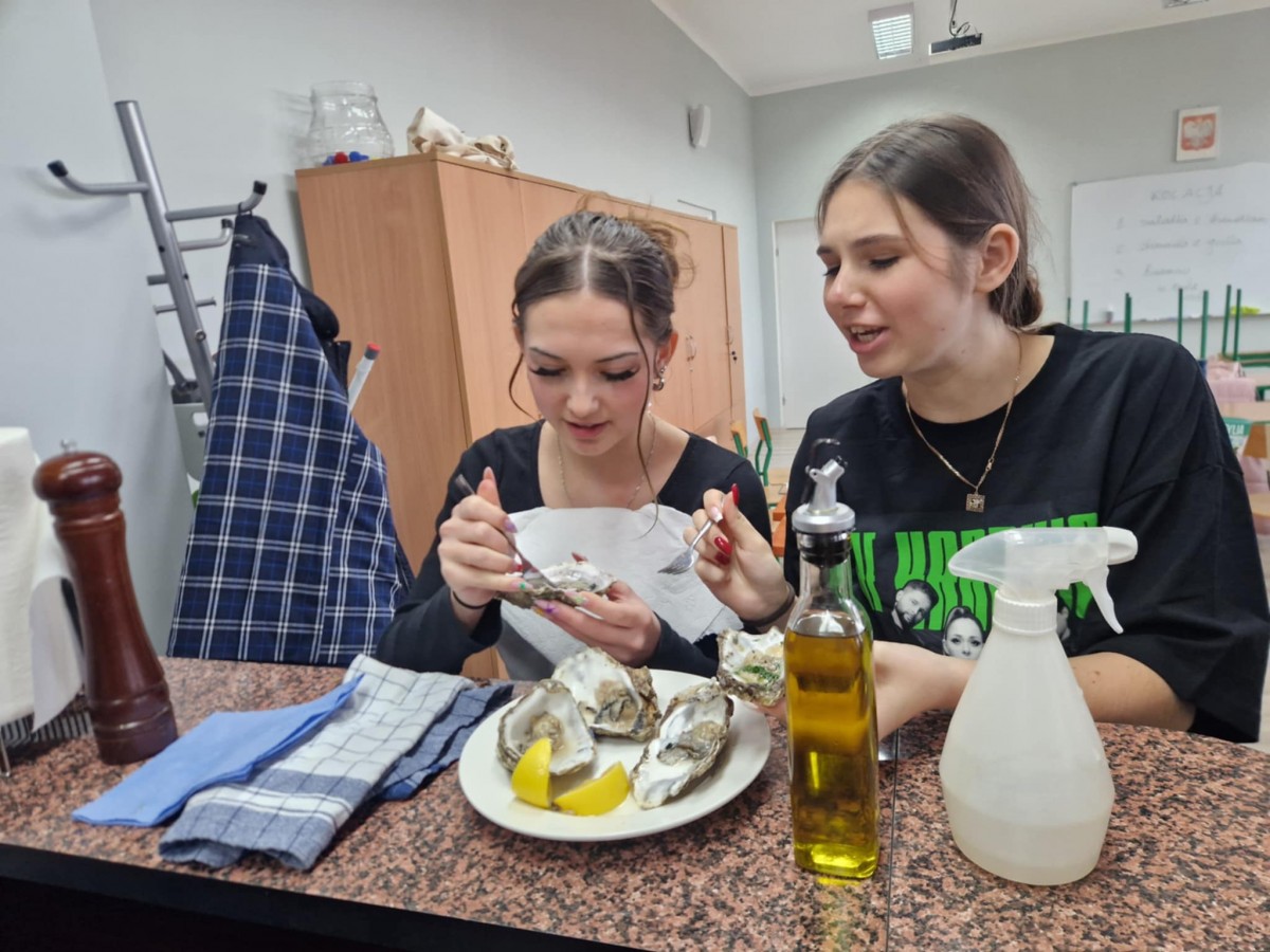 Szkolenie typu „kelner-poziom zaawansowany” z projektu „Kariera zawodowców w naszych rękach bis”. Uczennice z klasy 2H zgłębiały tajniki przygotowania i serwowania takich potraw jak: ostrygi, homary, ślimaki czy też flambirowane owoce i naleśniki. Niesamowite wrażenia smakowe oraz nowe doświadczenia zawodowe. Dziękujemy Panu Marcinowi Włodarczyk za profesjonalne szkolenie. Projekt realizowany przez UPEMI z Warszawy oraz Starostwo Powiatowe w Zgorzelcu.
