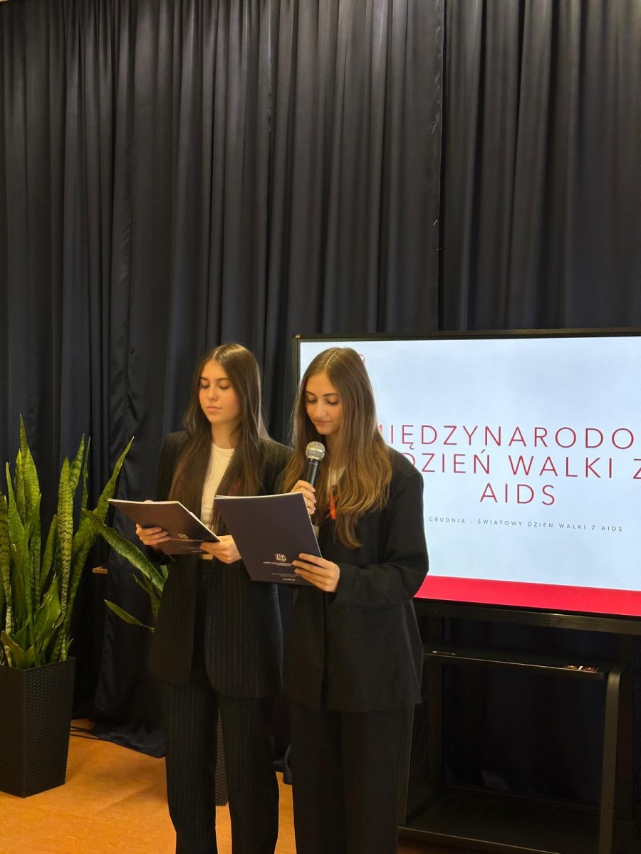 W piątek, 13 grudnia 2024 roku, uczniowie klasy II A oraz V H z zaangażowaniem i dużą dawką kreatywności zaprezentowali swoim kolegom program profilaktyczny pt. „AIDS to nie wyrok”. Wydarzenie miało na celu podniesienie świadomości na temat HIV i AIDS, a także kształtowanie odpowiedzialnych i świadomych postaw wśród młodzieży.