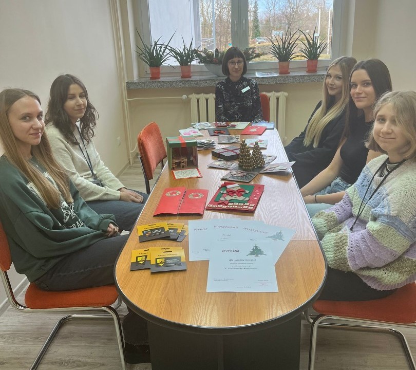Konkurs plastyczny z elementami wiedzy o krajach anglojęzycznych polegał na wykonaniu dowolną techniką świątecznej kartki oraz załączeniu życzeń w języku angielskim.
