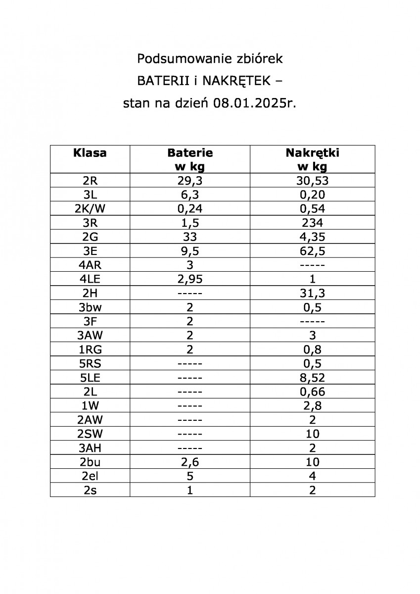 W załączniku znajduje się tabelka podsumowująca obie zbiórki na dzień 08.01.2025r.