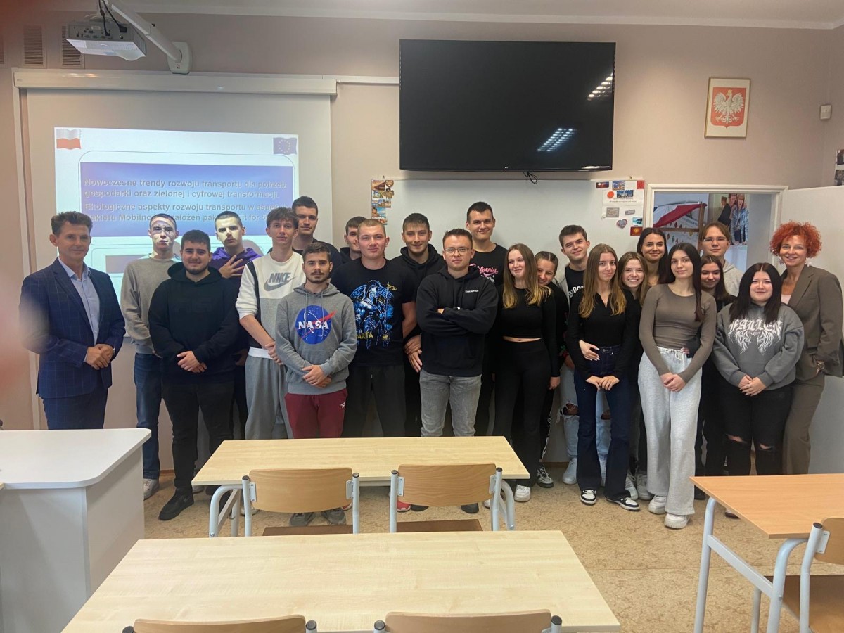 W ramach projektu Kariera Zawodowców w Naszych Rękach BIS odwiedzili nas: Prorektor dr hab. Maciej Stajniak profesor Wyższej Szkoły Logistycznej w Poznaniu i pracownik Wyższej Szkoły Logistycznej mgr Artur Olejniczak. Szkoliliśmy się w zakresie ,,Nowoczesne trendy rozwoju transportu dla potrzeb gospodarki oraz zielonej i cyfrowej transformacji’’ oraz Ekologiczne aspekty rozwoju transportu w aspekcie Pakietu Mobilności i założeń pakietu w typie ,,Fit for 55’’.