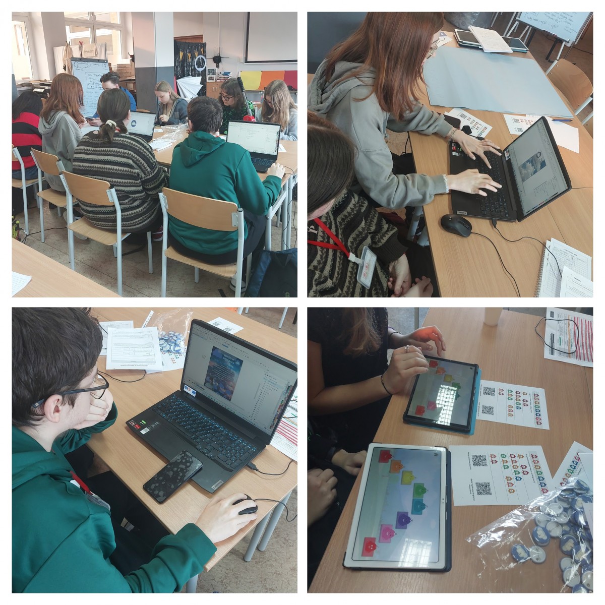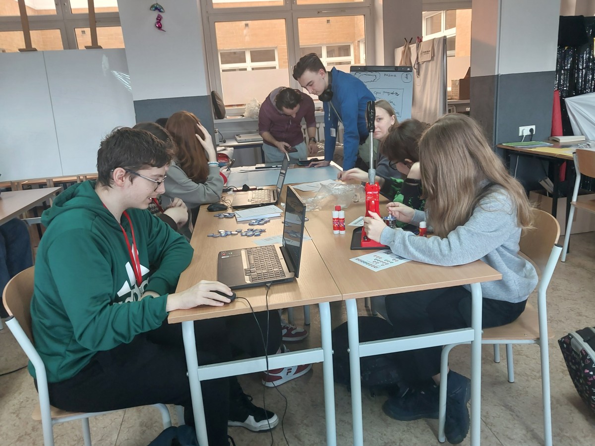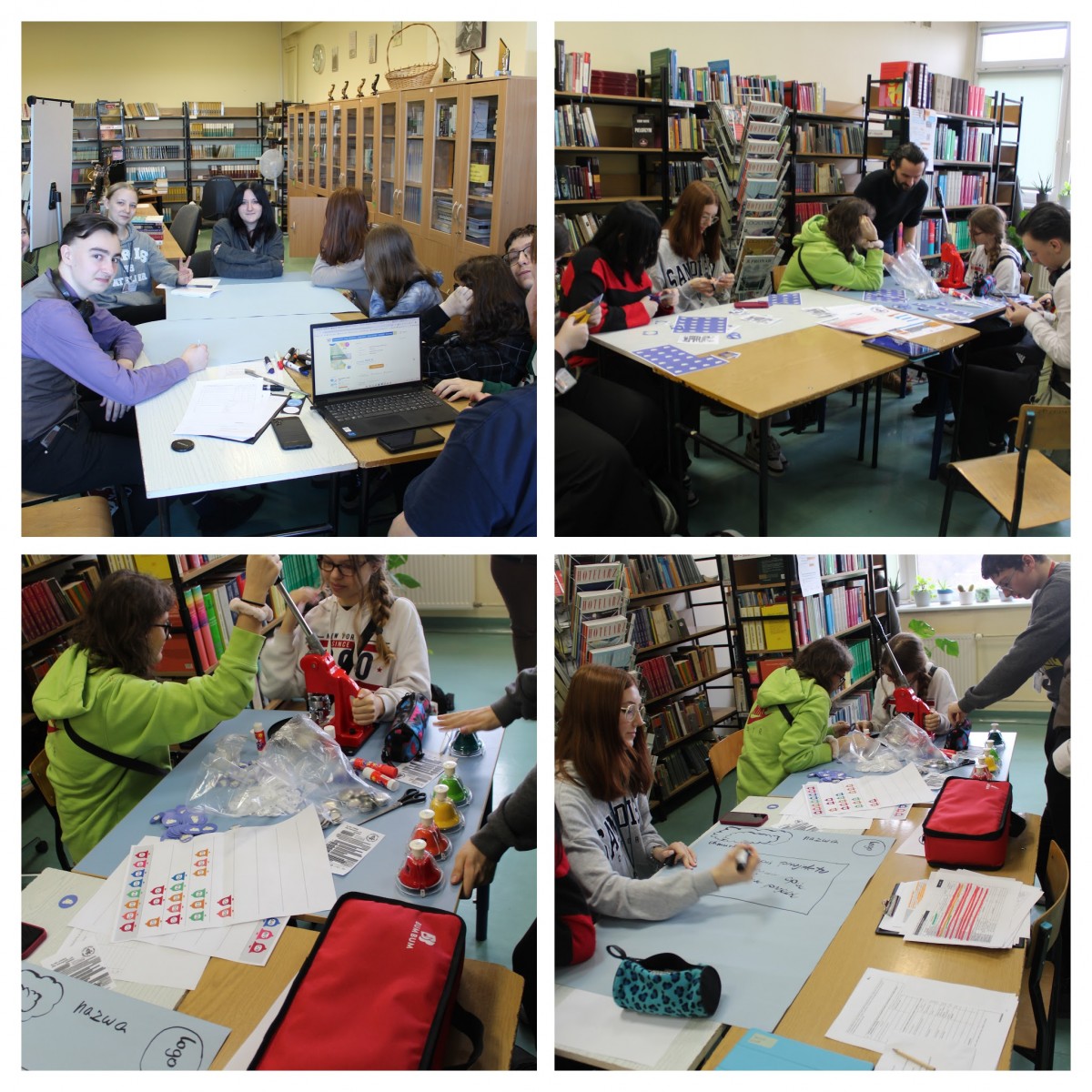 W czasie spotkań roboczych, które odbyły się w styczniu 2025 roku, w bibliotece szkolnej pod opieką Pani Iwony Miklaszewskiej-Stawowej oraz w pracowni reklamowej pod opieką Pani Magdaleny Kempfert, młodzież przygotowywała się do zorganizowania akcji promocyjnej, projektując logo projektu, gadżety (w postaci przypinek) oraz plakaty i ulotki informacyjne. Mając do dyspozycji grant w wysokości 2800 zł, uczestnicy spotkań zadecydowali o zakupie 44 kodów dostępowych elektronicznych podręczników do historii (Historia 2. Ślady czasu. Multipodręcznik uczniowski. Zakres podstawowy i rozszerzony. Wersja premium) oraz języka polskiego (Oblicza epok 2.1. Język polski. Podręcznik. Klasa 2. Część 1. Zakres podstawowy i rozszerzony.). Pozostałe środki przeznaczone zostały na działania promocyjne projektu w szkole. Młodzież zaproponowała jej kulminację na dzień 5 marca 2025r., na korytarzu pod gabinetem 102, w godzinach 10:30-10:45 (podczas długiej przerwy).