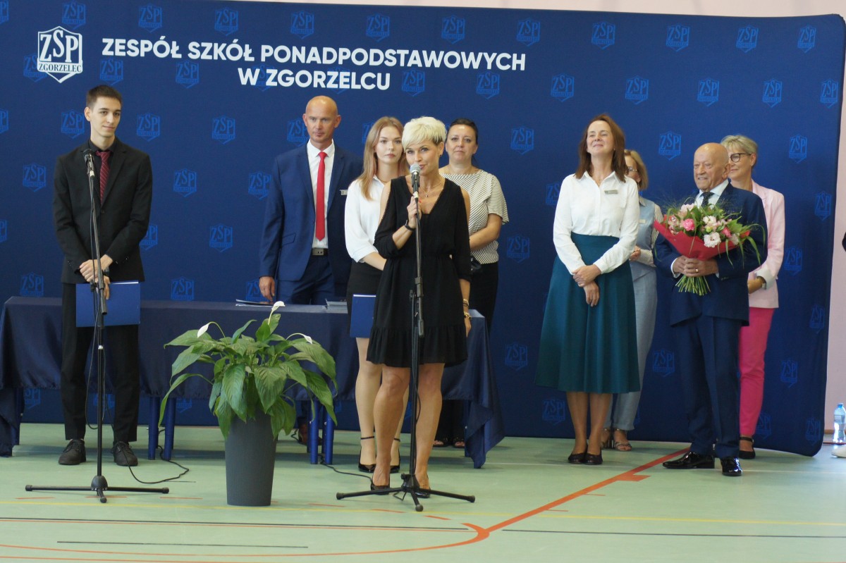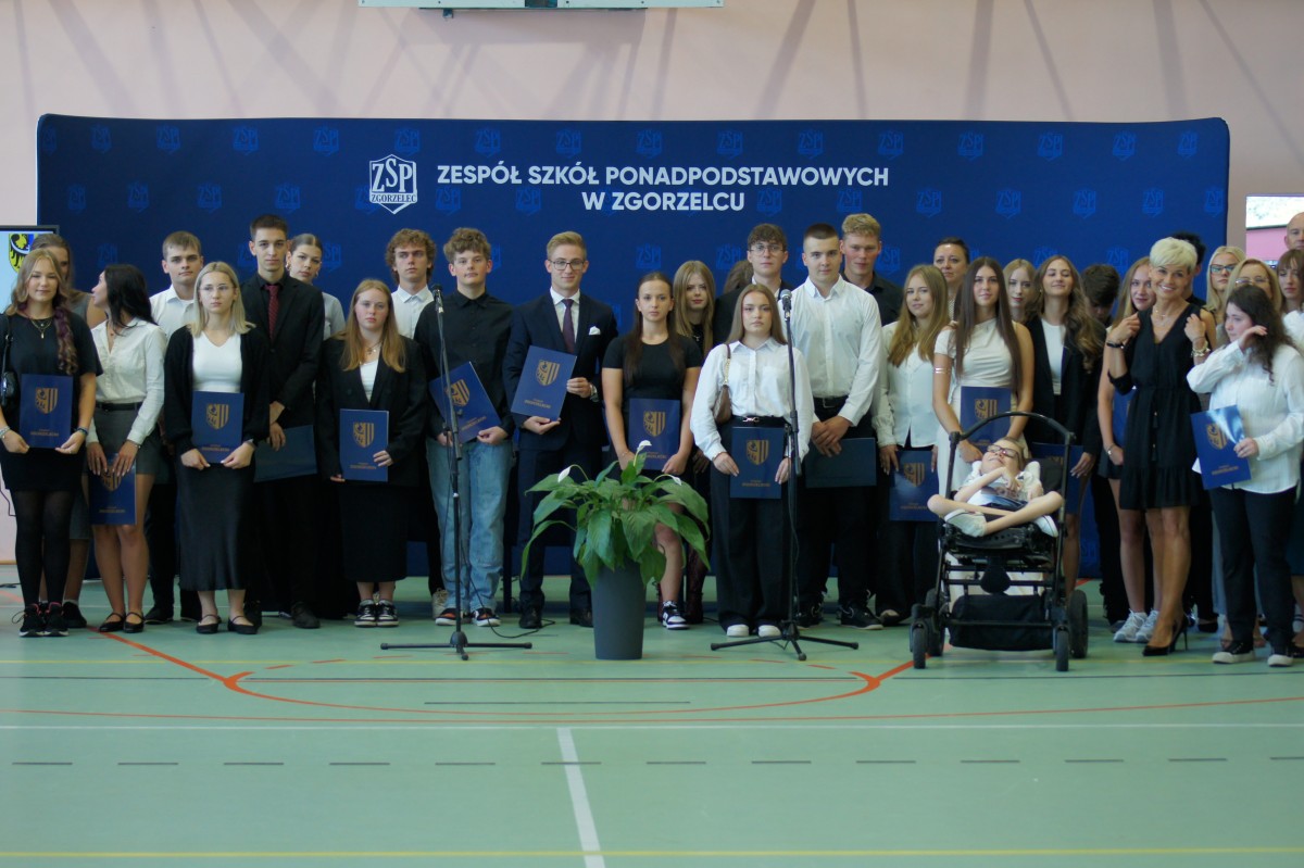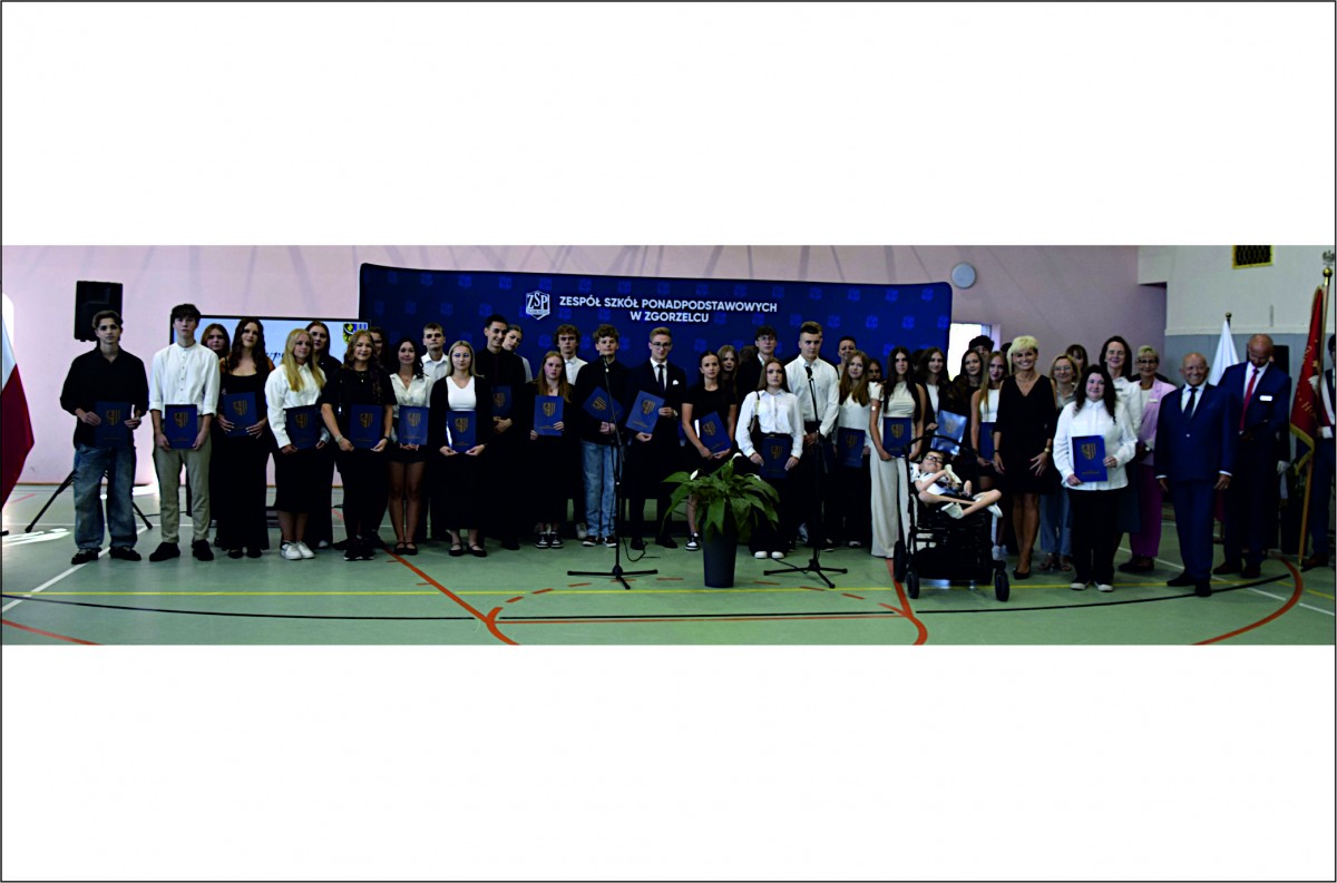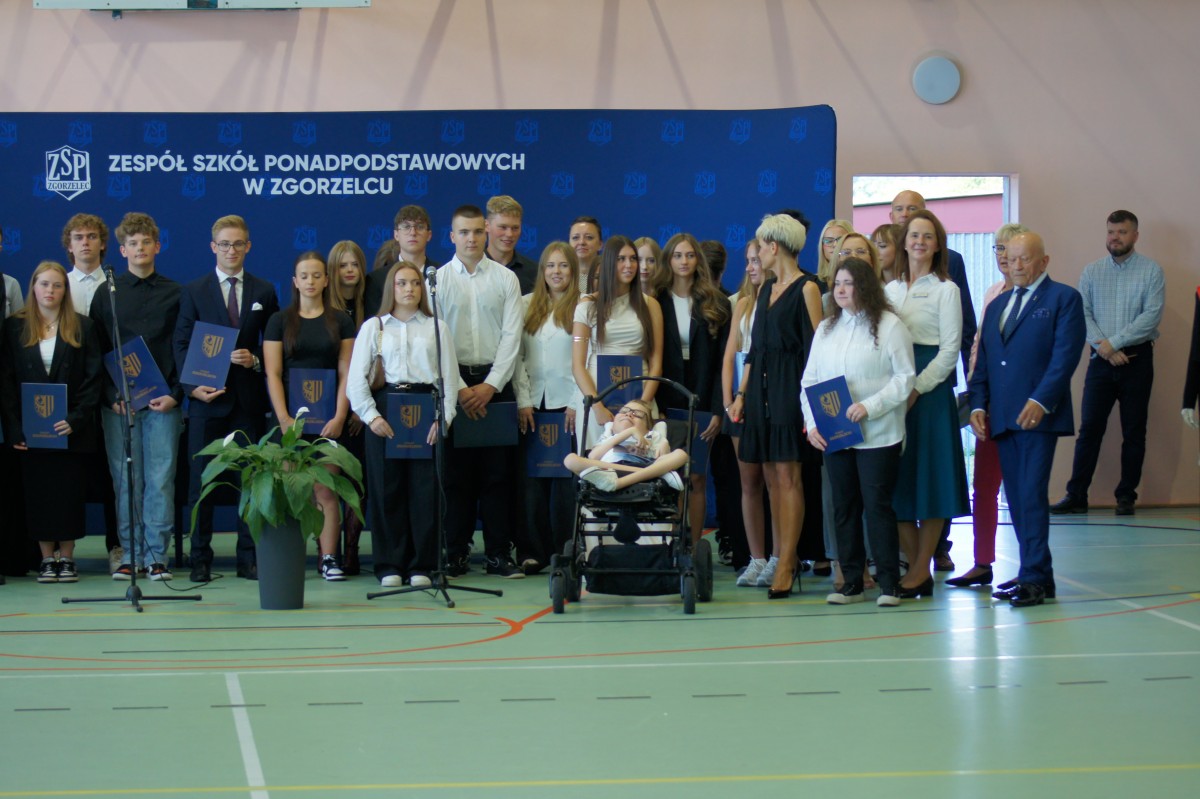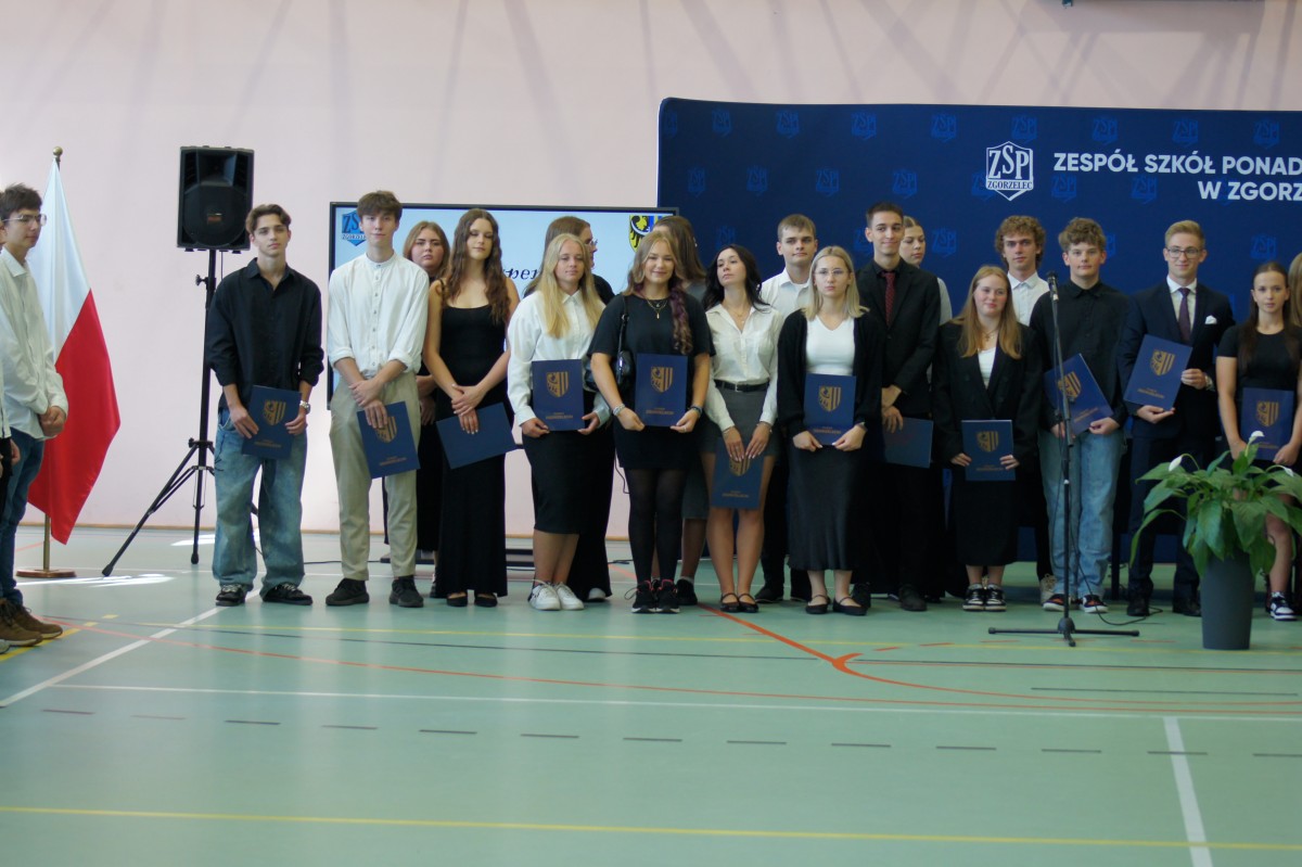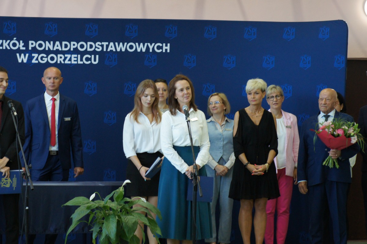 W dniu dzisiejszym w naszej szkole odbyło się uroczyste rozpoczęcie roku szkolnego 2025/2026. Uroczystość uświetnili zaproszeni goście m.in. pani Dyrektor Wydziału Edukacji, Kultury i Sportu Starostwa Powiatowego w Zgorzelcu Agnieszka Budych, Starszy Cechu Rzemiosł Różnych pan Franciszek Wurszt i przedstawicielka Rady Rodziców pani Magdalena Żołnierczuk. Pani Dyrektor Monika Listwan przywitała naszą młodzież i zaproszonych gości po przerwie wakacyjnej, życząc wszystkiego najlepszego w nadchodzącym roku szkolnym. Po przemówieniach Dyrekcji i zaproszonych gości wręczono uroczyście 43 wyróżnionym uczniom stypendia Starosty Zgorzeleckiego w kwocie 1500zł. Gratulujemy i jesteśmy z Was bardzo dumni. Dołączając się do życzeń, które padły w tracie uroczystości życzymy wszystkim uczniom i pracownikom naszej placówki samych sukcesów i zadowolenia w trakcie tego roku.
