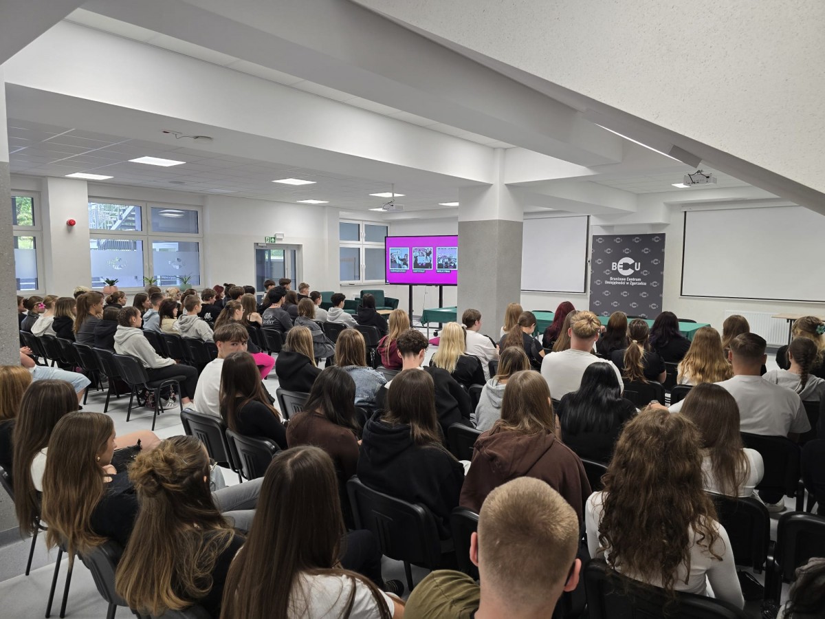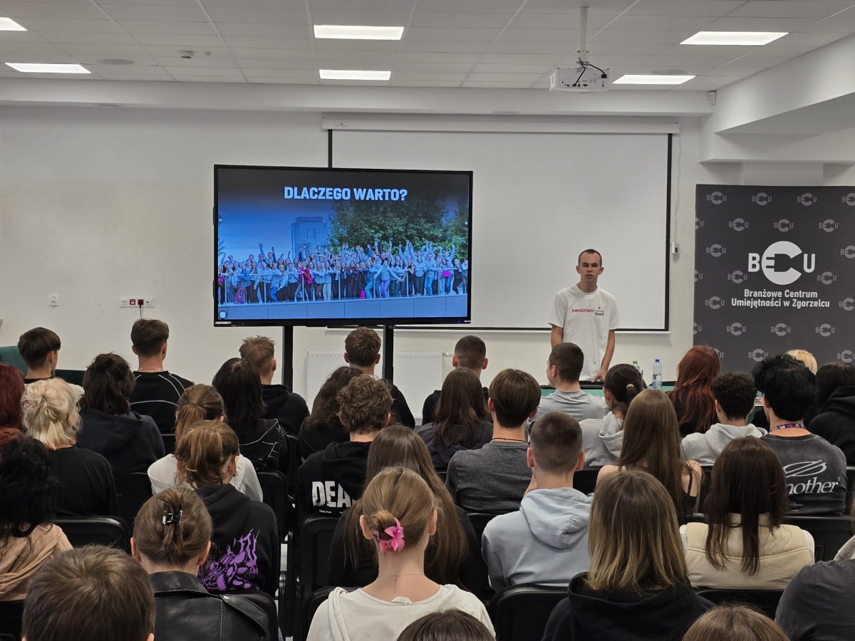 Podczas spotkania przedstawiciel olimpijczyków omówił Olimpiadę Zwolnieni z Teorii i opowiedział uczniom o własnych doświadczeniach związanych z realizacją projektów społecznych. Dzięki temu spotkaniu nasi uczniowie zostali zachęceni do realizacji własnych projektów społecznych, zdobywania kompetencji przyszłości i zmieniania swojego środowiska na lepsze.