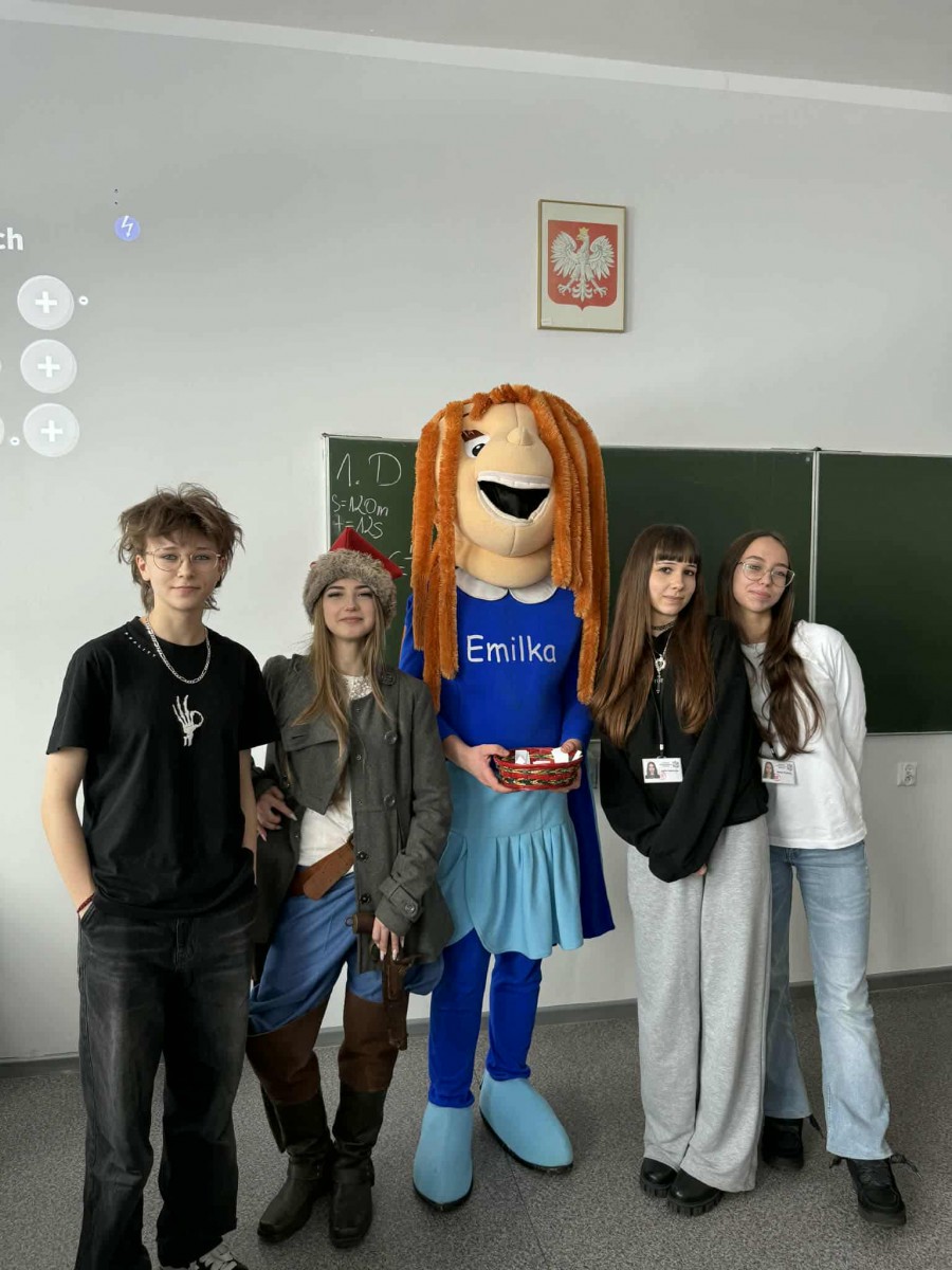 Kulminacyjnym punktem obchodów był się barwny korowód! Na jego czele dumnie maszerowała "Emilia Plater" w towarzystwie reprezentacji uczniów klas technikum i branżowych. Nasza patronka rozmawiała z uczniami, zadawała pytania dotyczące swojego życia, a poprawne odpowiedzi nagradzała słodyczami.