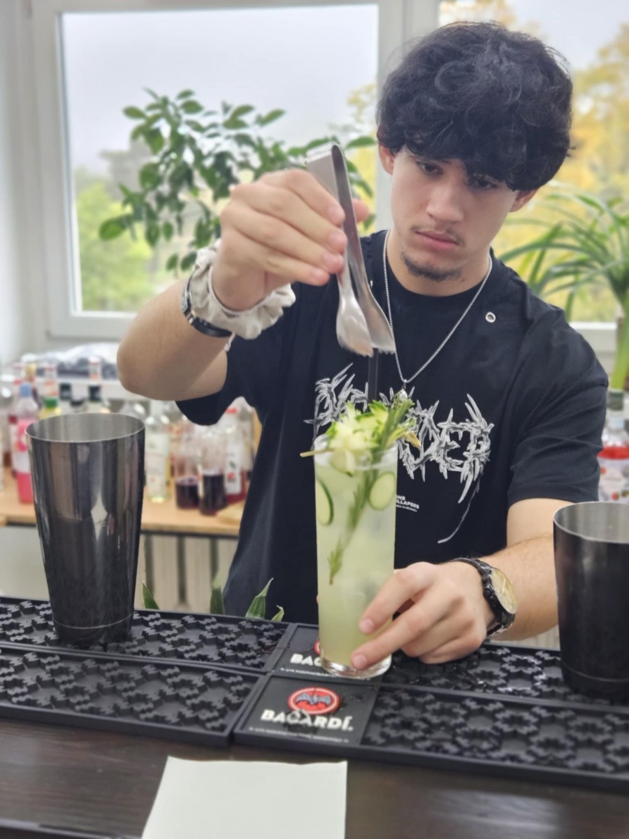 Zajęcia poprowadził Pan Marcin Włodarczyk z Akademii Sztuki Restauracyjnej w Krakowie, wprowadzając uczestników w bardziej zaawansowane techniki pracy za barem oraz prezentując aktualne trendy w sztuce miksologii.