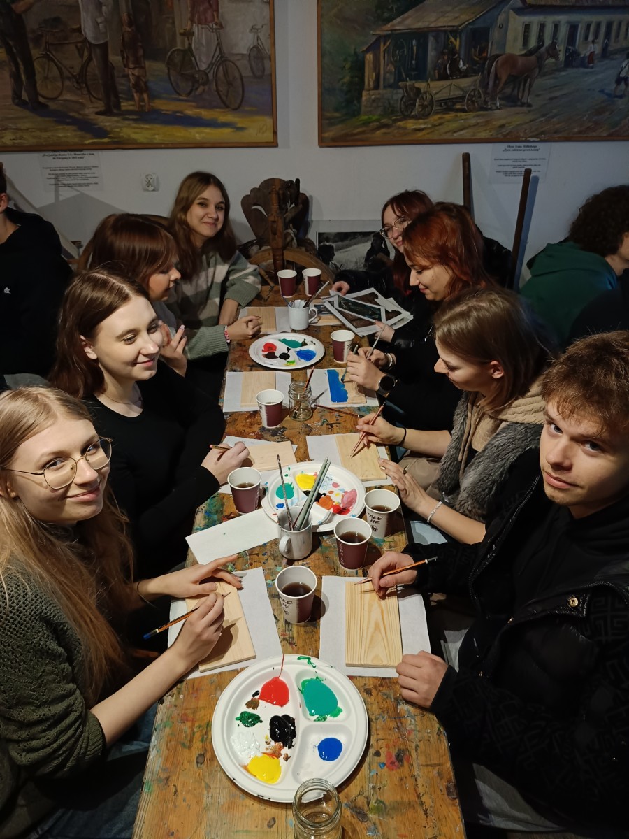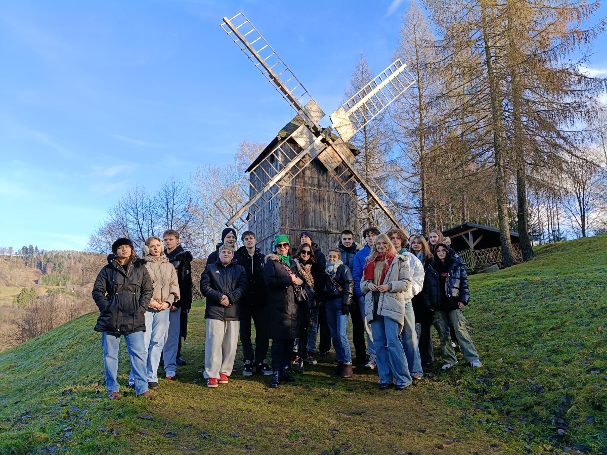 Pierwszym punktem programu było Muzeum Pogórza Sudeckiego w Kudowie-Zdroju. Uczniowie mieli okazję zapoznać się z bogatymi zbiorami ukazującymi tradycje i codzienne życie mieszkańców Sudetów na przestrzeni wielu lat. Po zwiedzaniu muzeum odbyły się warsztaty malowania na drewnie, podczas których młodzież, pod okiem prowadzących, tworzyła własne kompozycje inspirowane sztuką ludową.